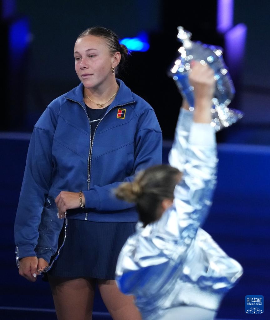 9月6日,阿尼西莫娃(后)在頒獎儀式上神情落寞。