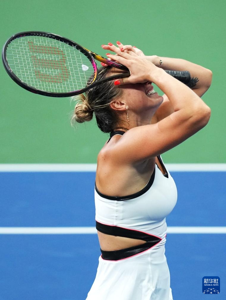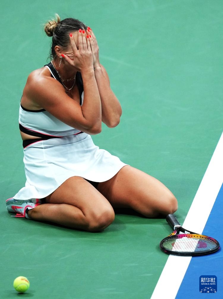 9月6日,薩巴倫卡在比賽獲勝后難掩激動。