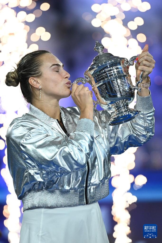 9月6日,薩巴倫卡在頒獎儀式上親吻獎杯。