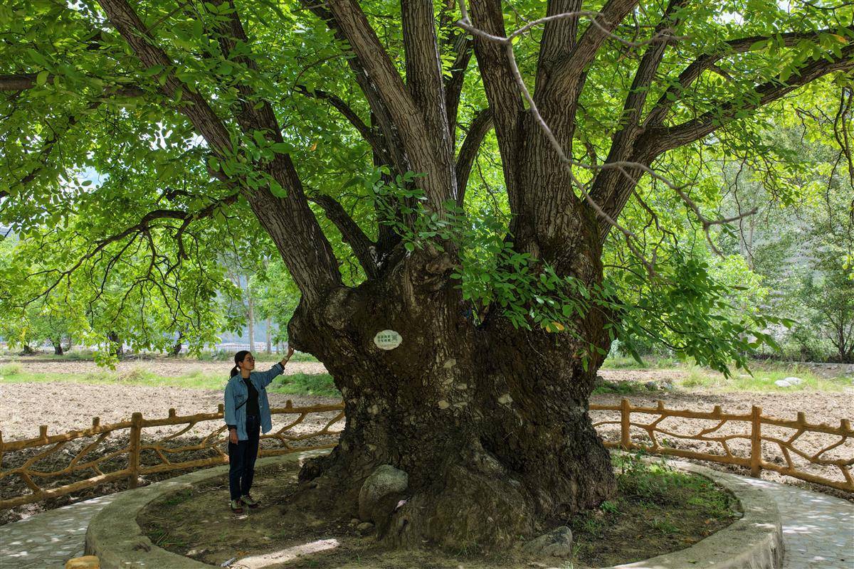 長(zhǎng)江大學(xué)劉利平博士守護(hù)加查千年核桃樹。(湖北日?qǐng)?bào)全媒記者 吳堅(jiān) 攝)