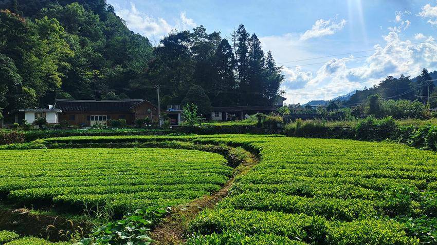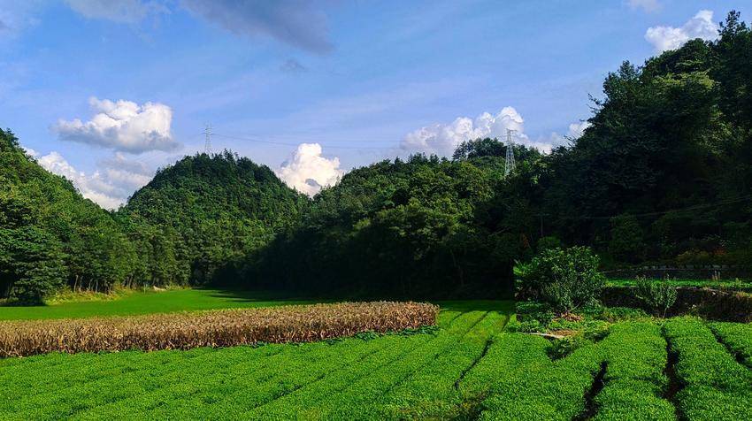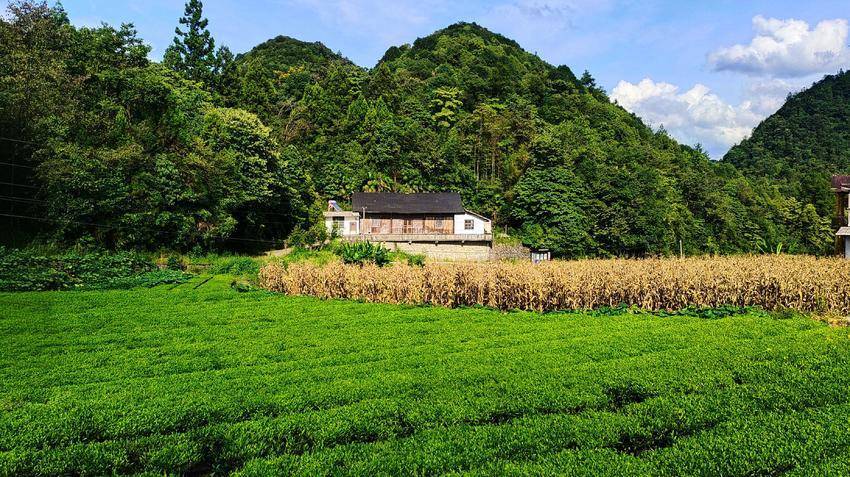 一壟壟秋茶是鮮活的綠,層層疊疊漫向山灣,風拂過時,整片茶林便似碧海揚波,漾著生機。茶園又有秋收的玉米林點綴著,枯黃的莖葉反倒襯得秋茶愈發鮮潤,像塊被精心打磨過的翡翠。人說春茶青翠欲滴最是動人,可這秋茶依舊翠綠滿園,葉片凝著秋陽的溫色,透著獨有的韌勁,自有它的絕色風華。