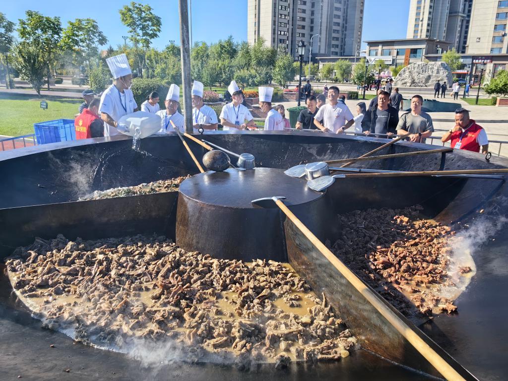 ↑美食區(qū)的鐵鍋燉大鵝。新華社記者 王君寶 攝