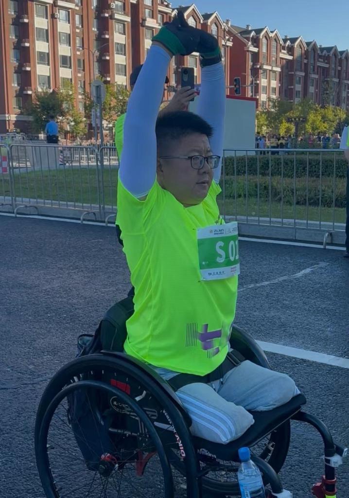 ↑田立柱正在熱身。新華社記者 戴錦镕 攝