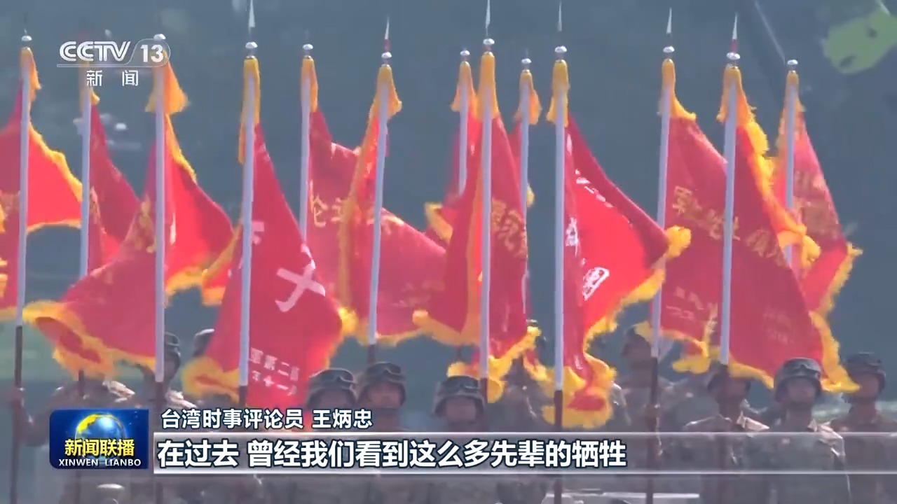 臺灣時事評論員 王炳忠:這一次非常有幸能夠在天安門觀禮臺上看這一次閱兵。和平必須靠實力確保,在過去,曾經這么多先輩的犧牲換得的對日抗戰的勝利以及臺灣光復,作為每一個中華兒女都不能夠遺忘。