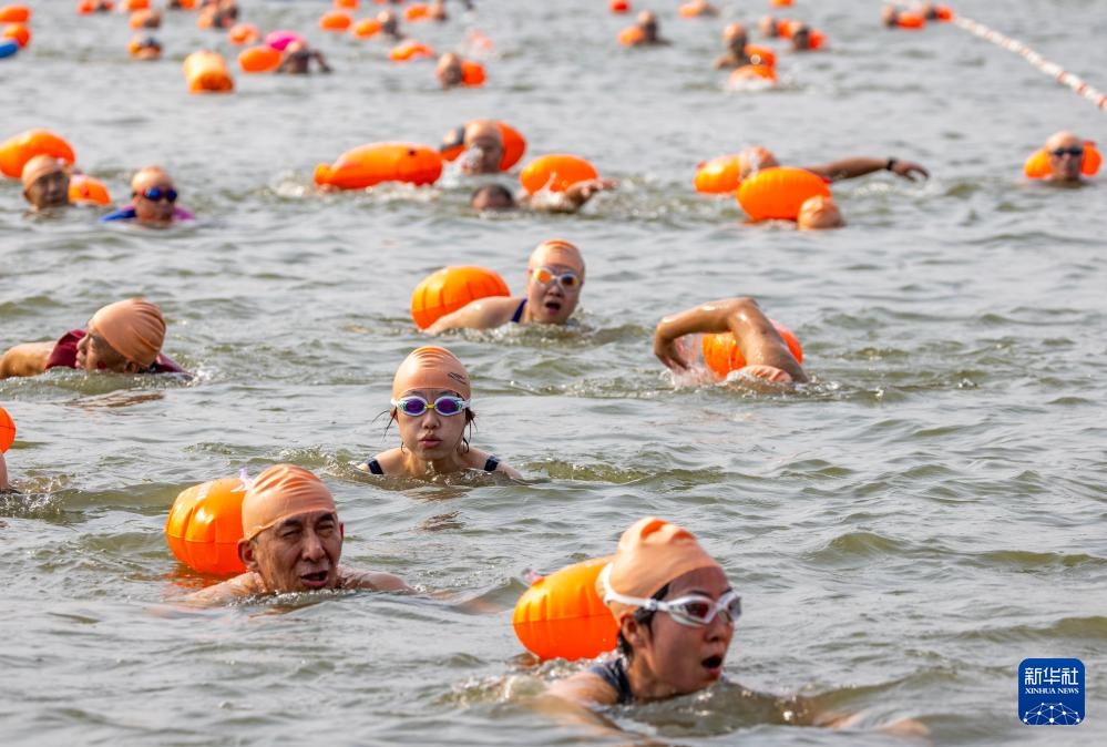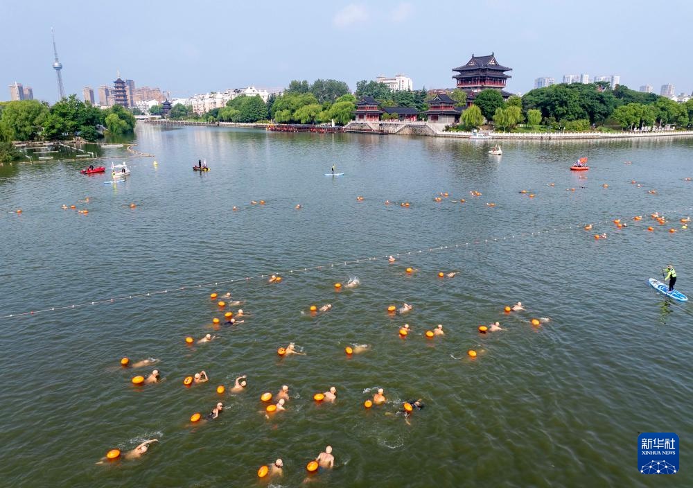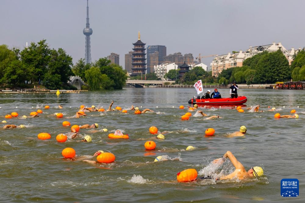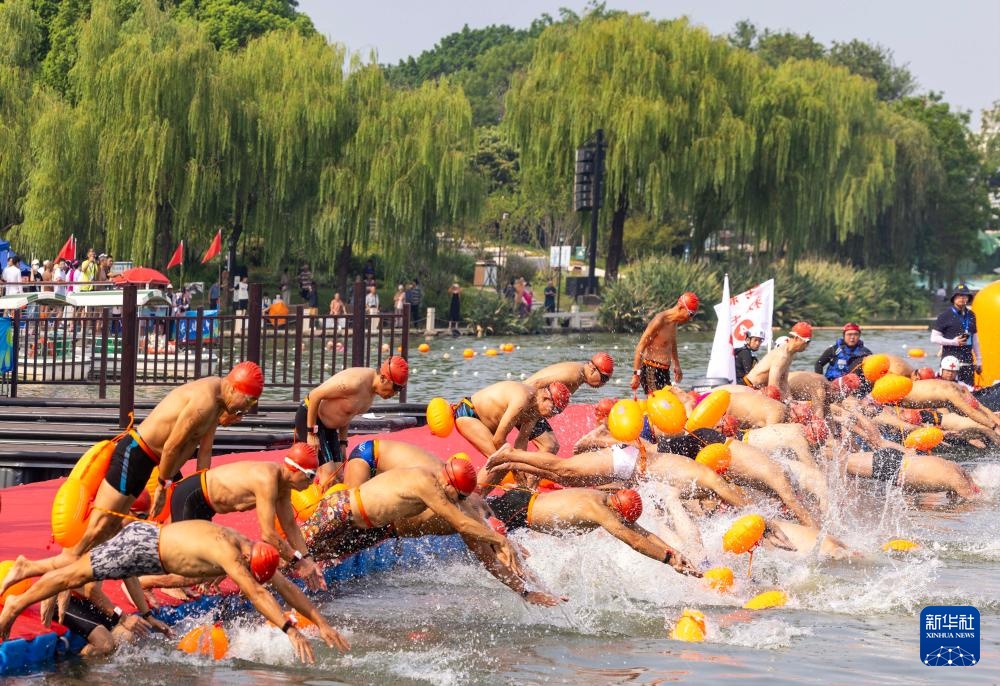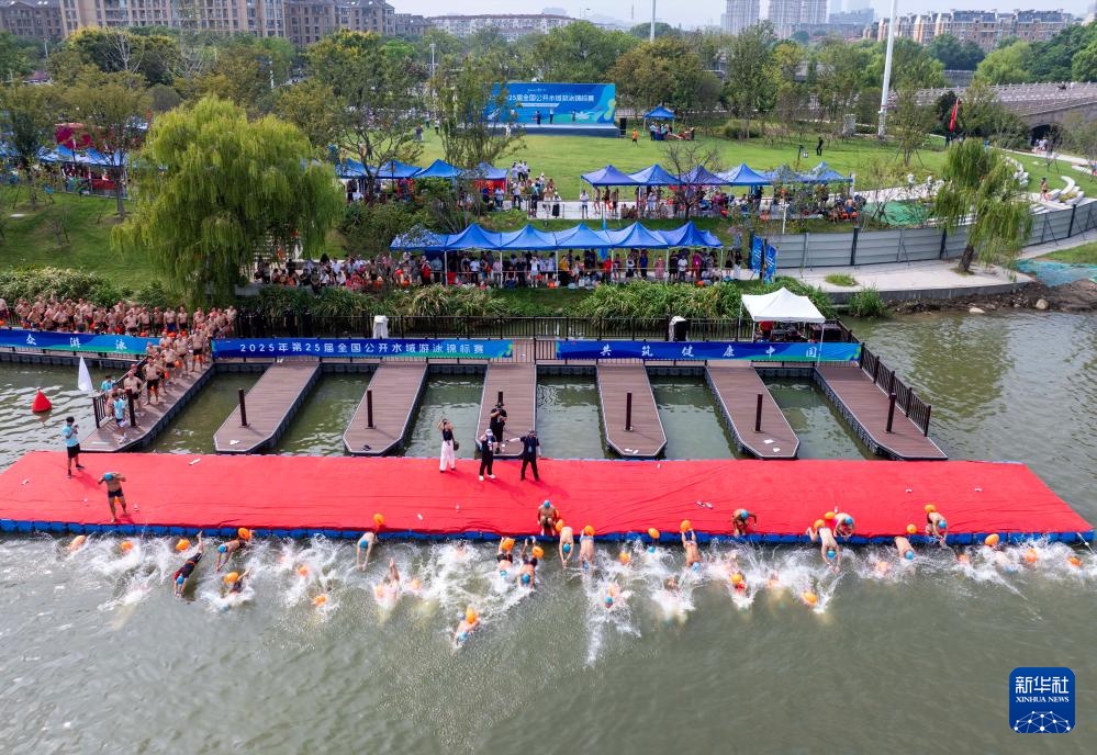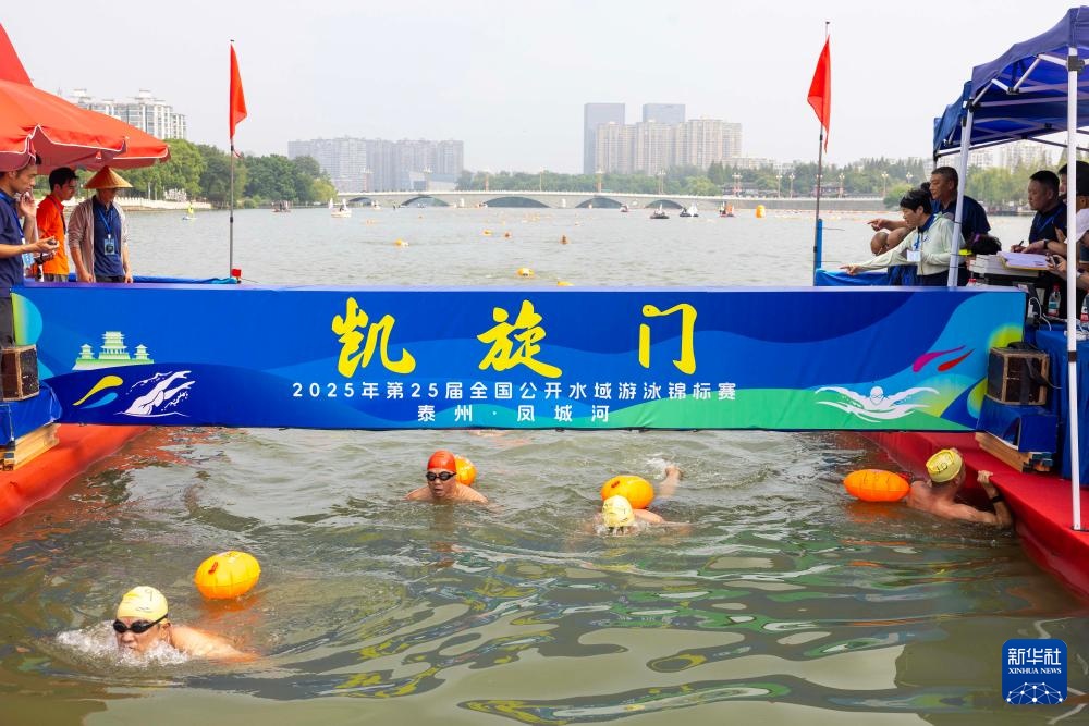 當日,2025年第25屆全國公開水域游泳錦標賽在江蘇省泰州市海陵區鳳城河水域開賽。