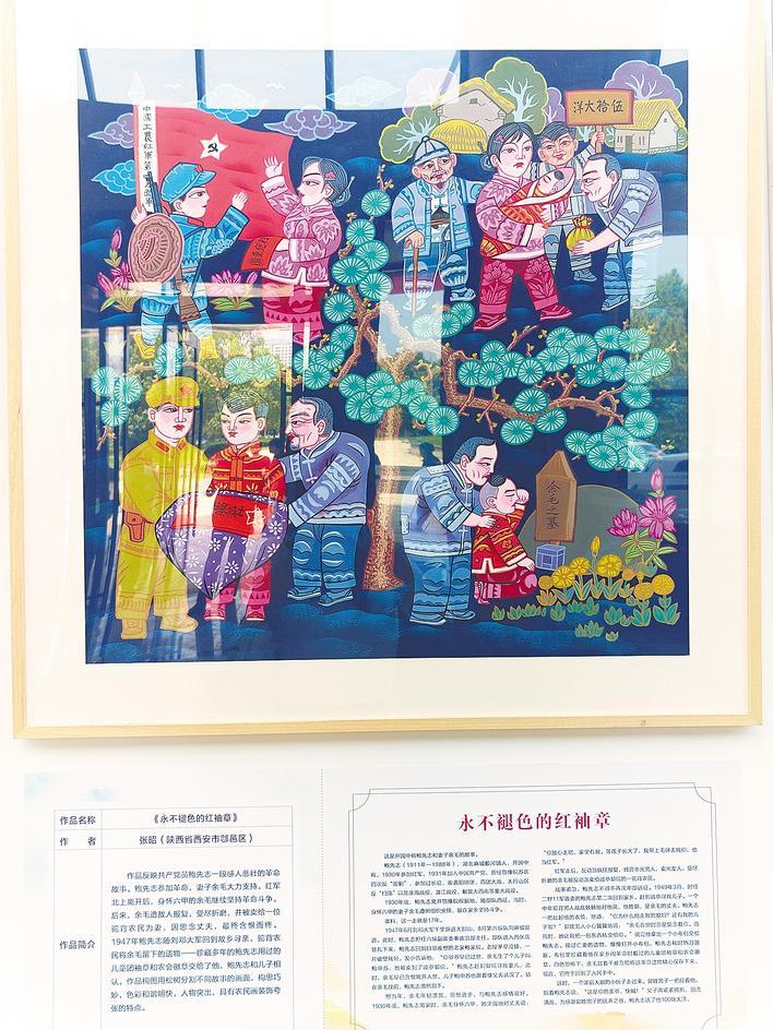 農民畫作品《永不褪色的紅袖章》。 (湖北日報全媒記者 曹雯 攝)