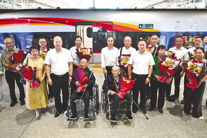 17名老兵和烈士遺屬代表乘高鐵返漢,省退役軍人事務(wù)廳負責人一行現(xiàn)場歡迎。 (湖北日報全媒記者 任勇 攝)
