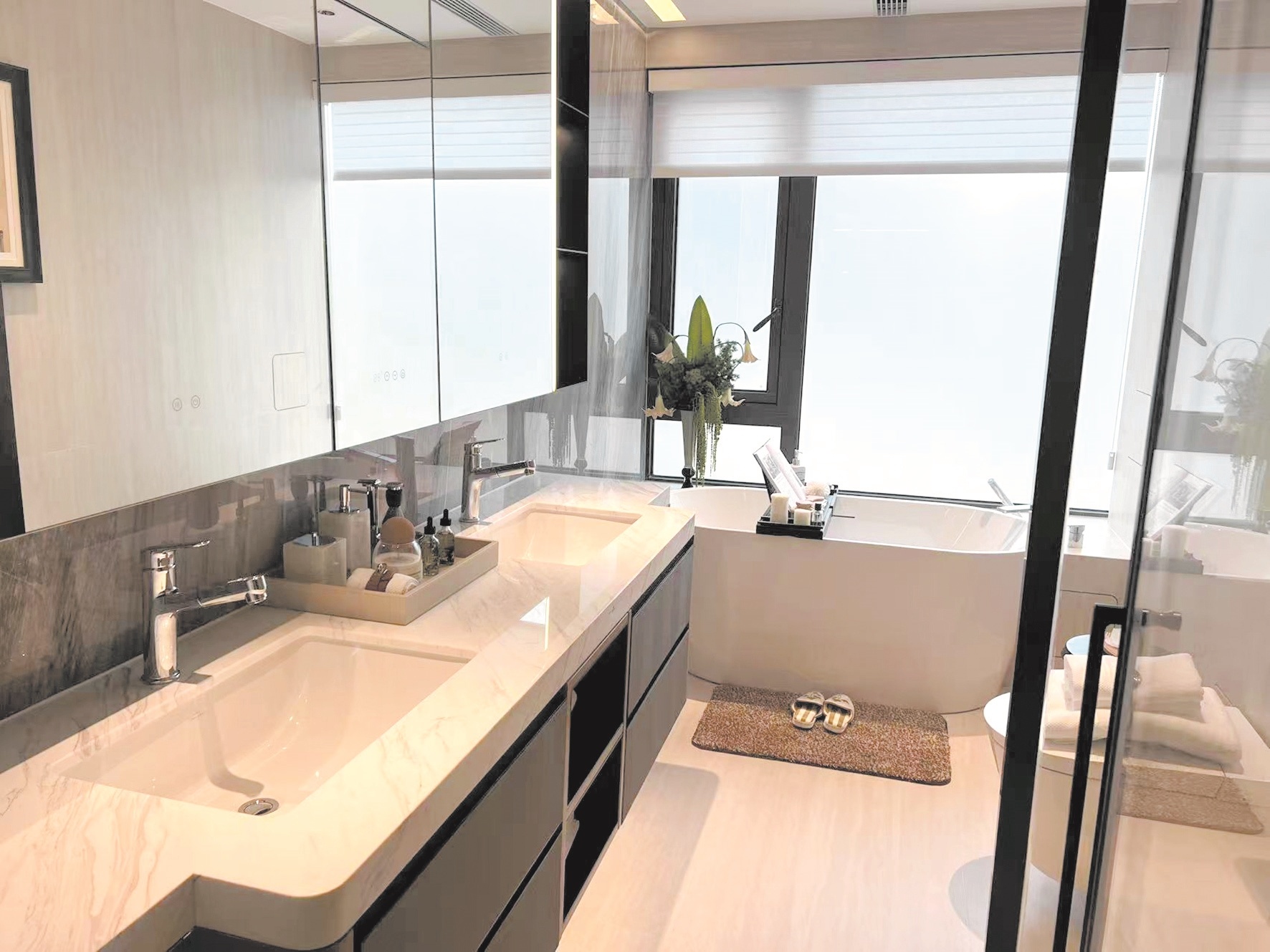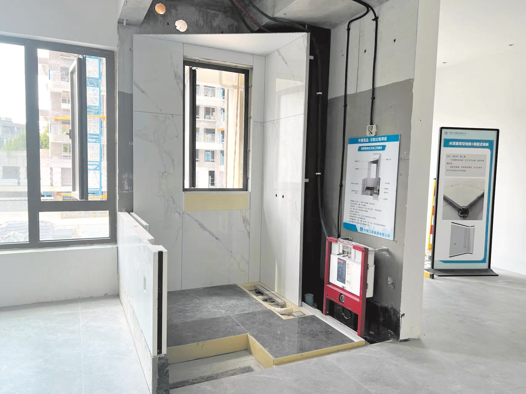 日前,武漢首個獲批備案的第四代住宅中建壹品·漢韻公館項目,在新開放的工藝樣板間里,首次展示了模塊化衛浴的應用。