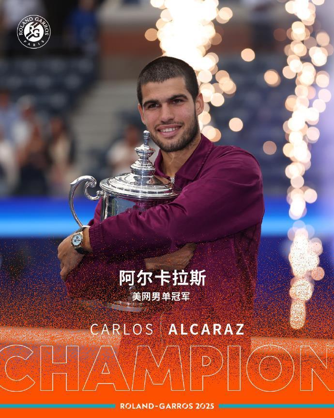 北京時(shí)間9月8日凌晨,阿爾卡拉斯戰(zhàn)勝辛納,奪得2025美國(guó)網(wǎng)球公開賽男單冠軍。很快,四大滿貫賽事紛紛發(fā)來了賀信和海報(bào),恭喜他奪得冠軍并重返世界第一寶座。