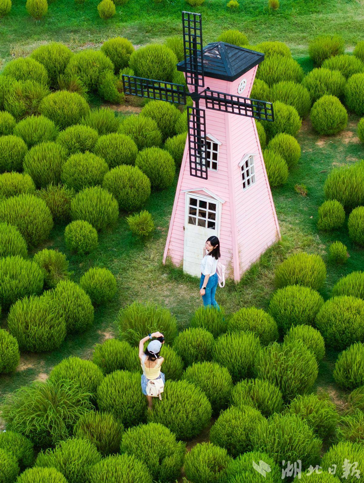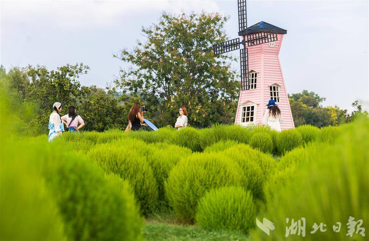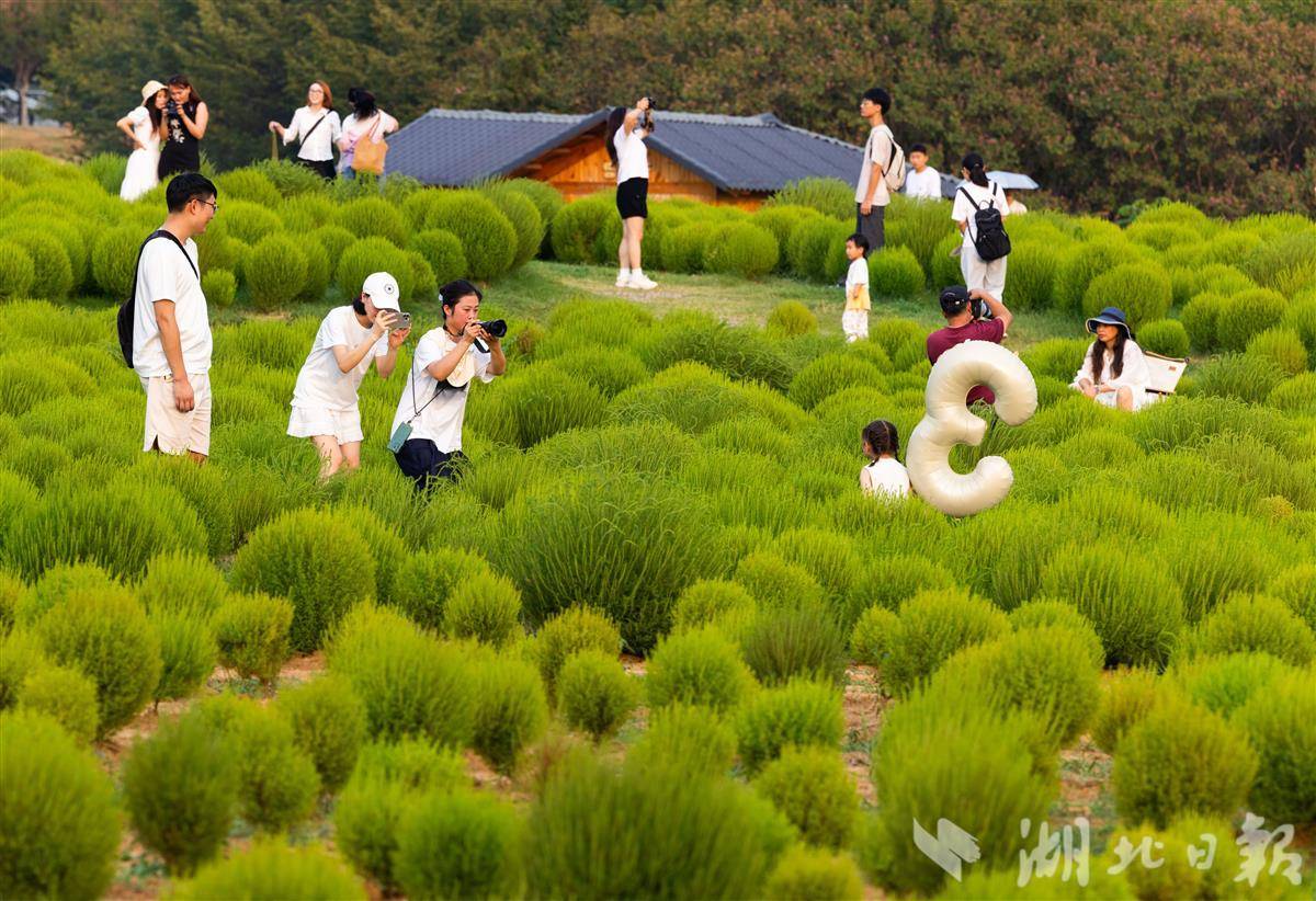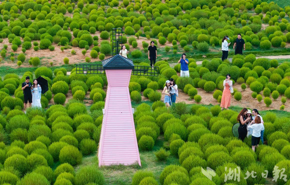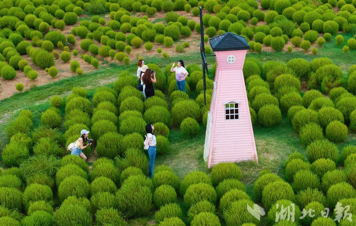 9月7日,武漢馬鞍山森林公園,4萬余株地膚草披上“綠衣裳”,吸引市民游客打卡游玩。預計9月底到10月初,地膚草將逐漸進入變色期,從青綠轉向暖黃、橘紅,屆時會像打翻的調色盤。(湖北日報全媒記者 薛婷 攝)