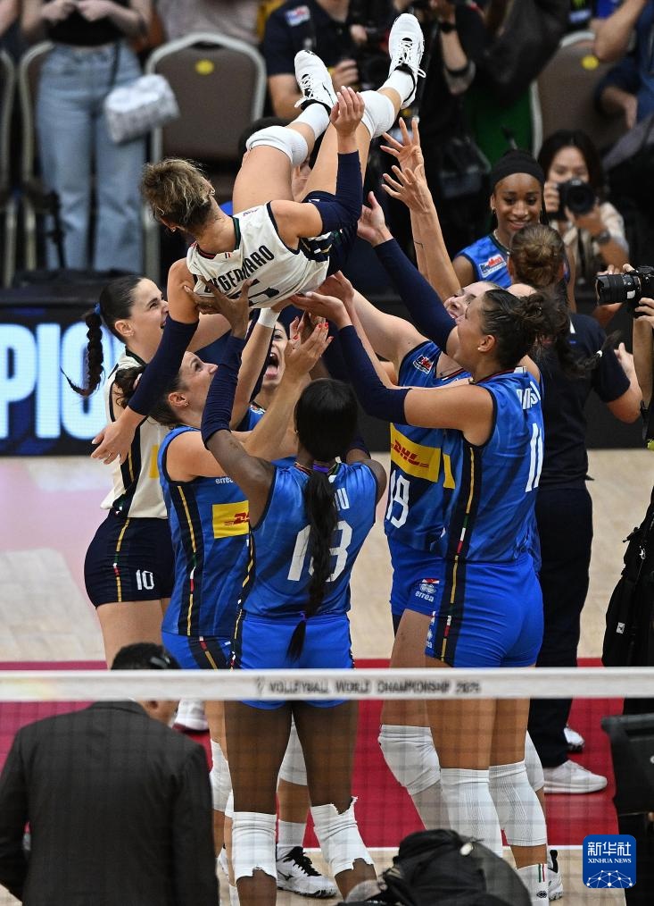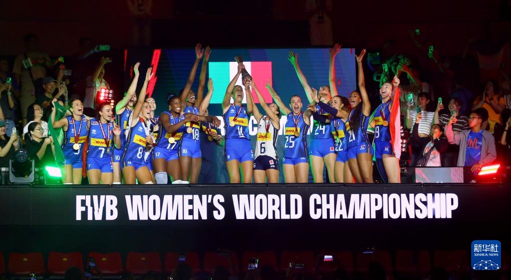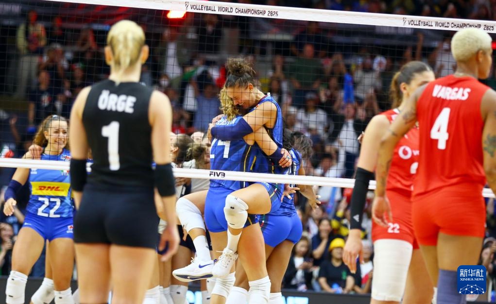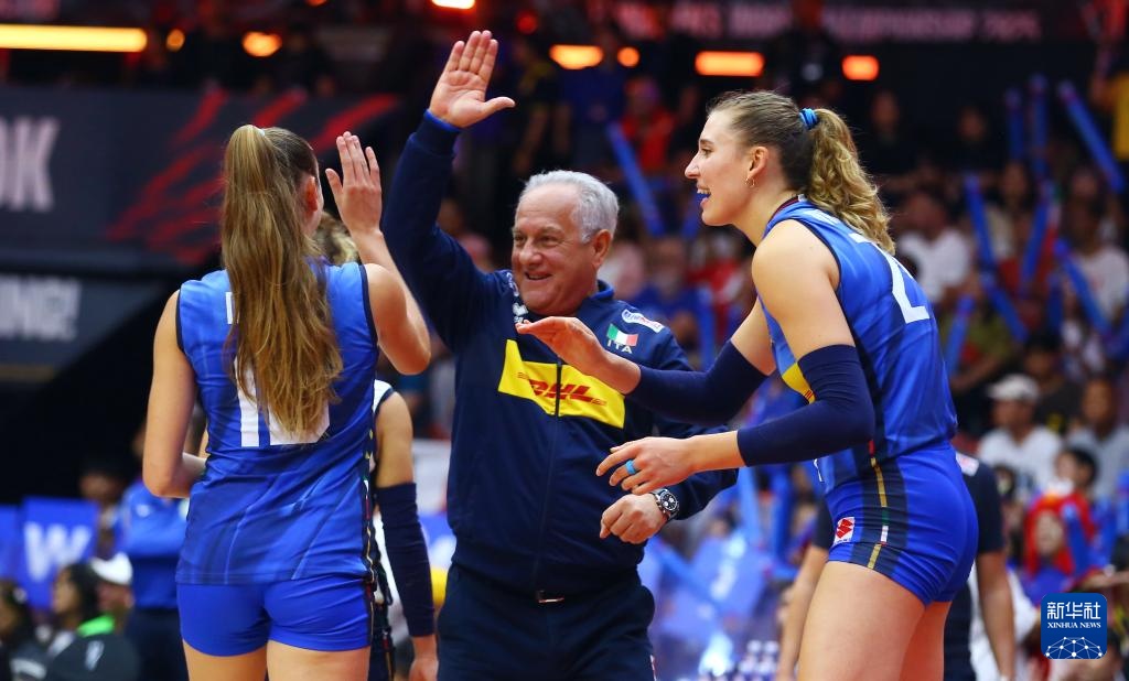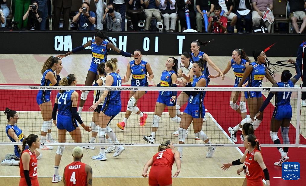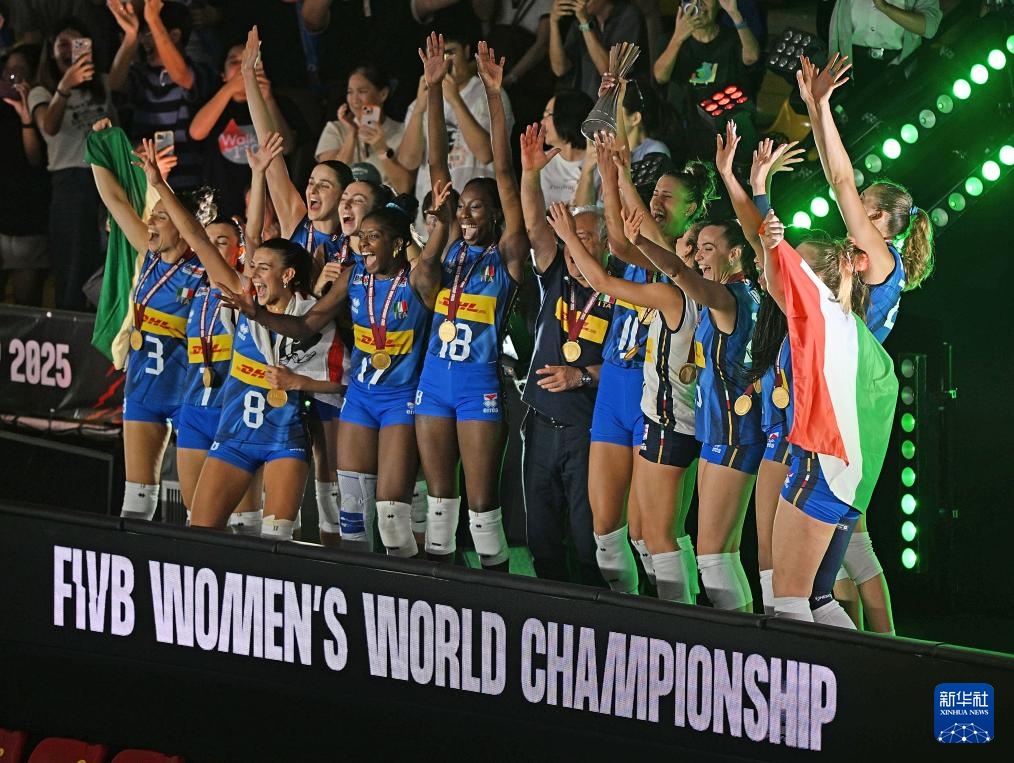當日,在泰國曼谷進行的2025年世界女排錦標賽決賽中,意大利隊3比2戰勝土耳其隊,獲得冠軍。