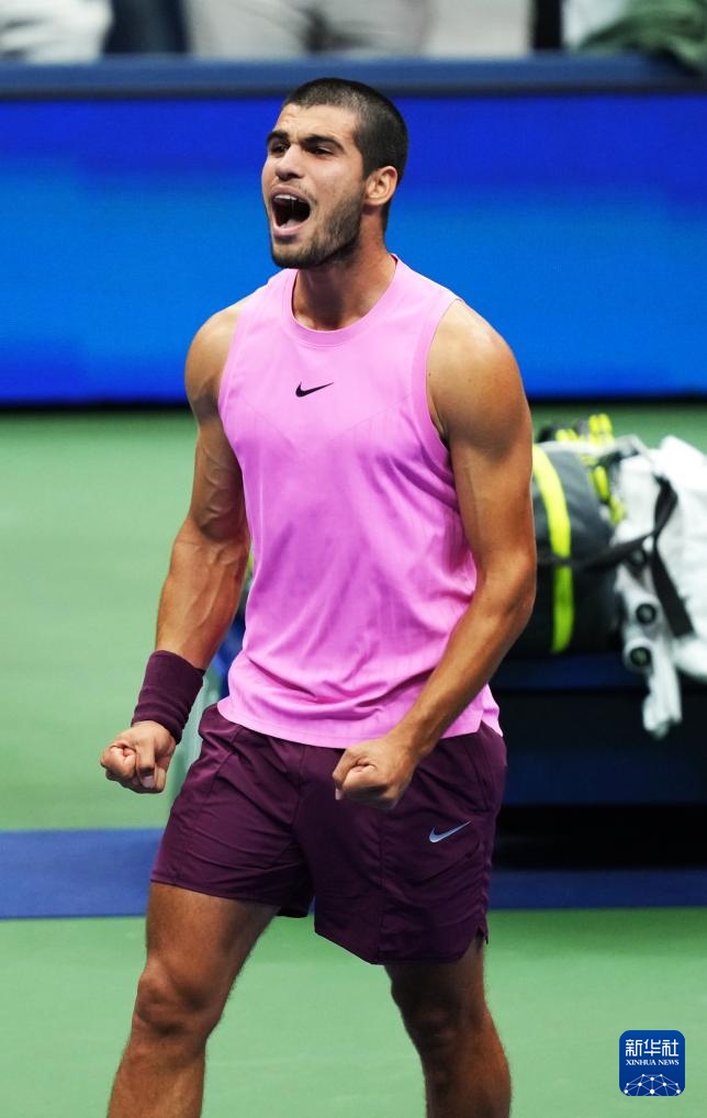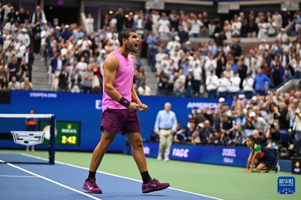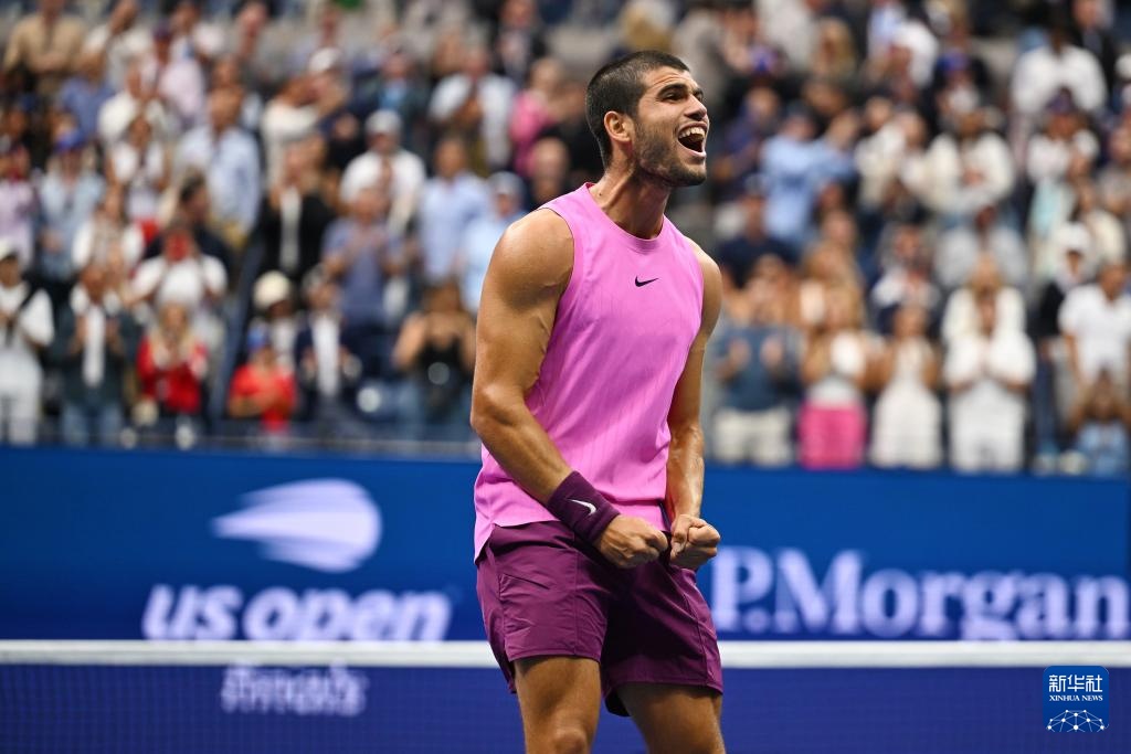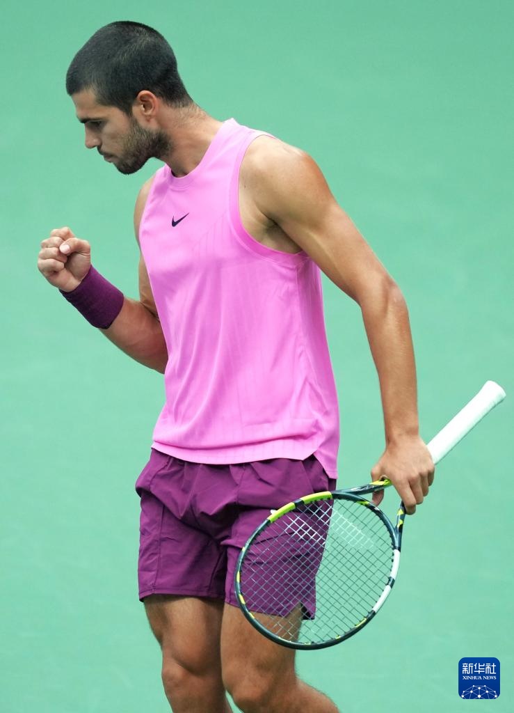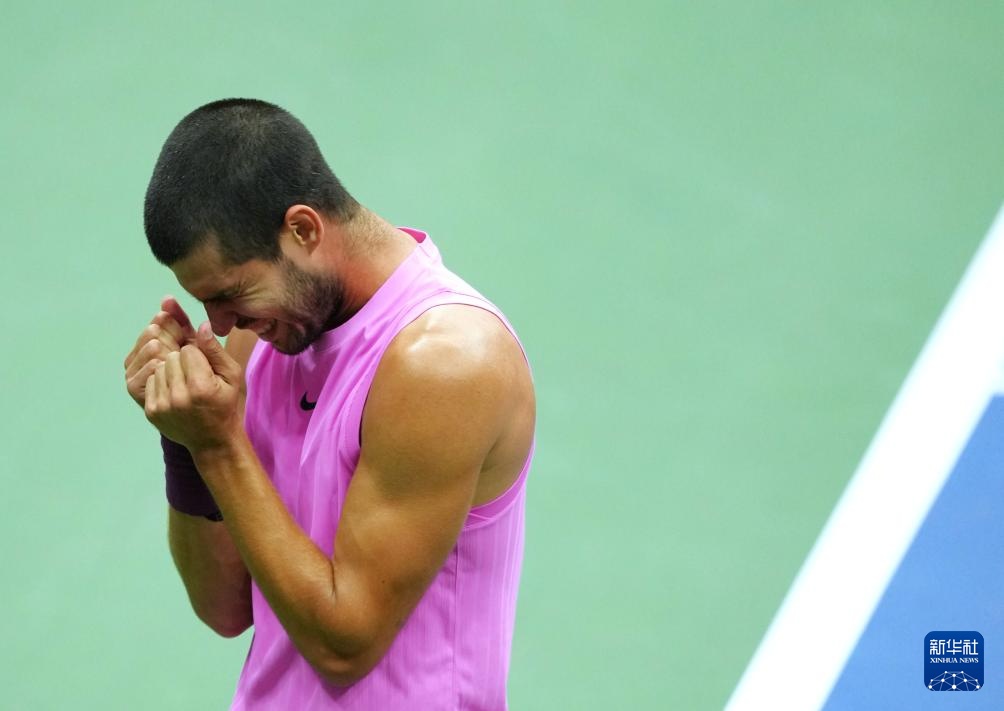 9月7日,阿爾卡拉斯慶祝拿到賽點(diǎn)。