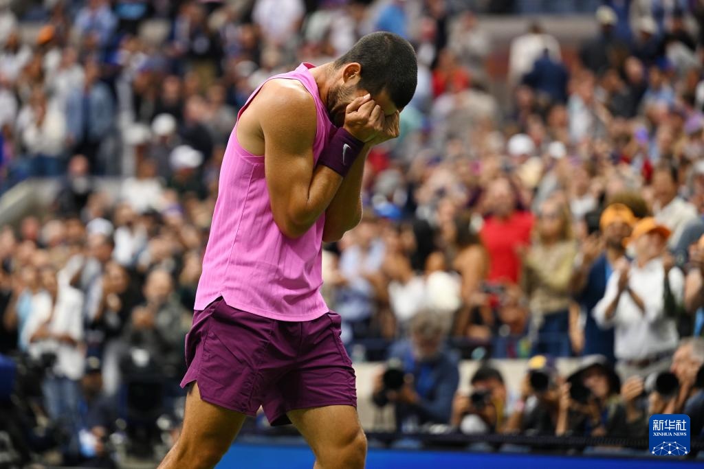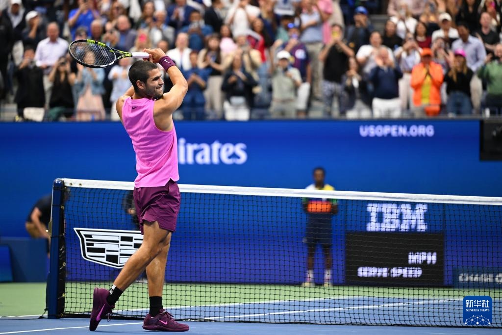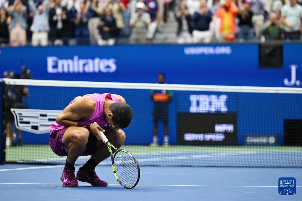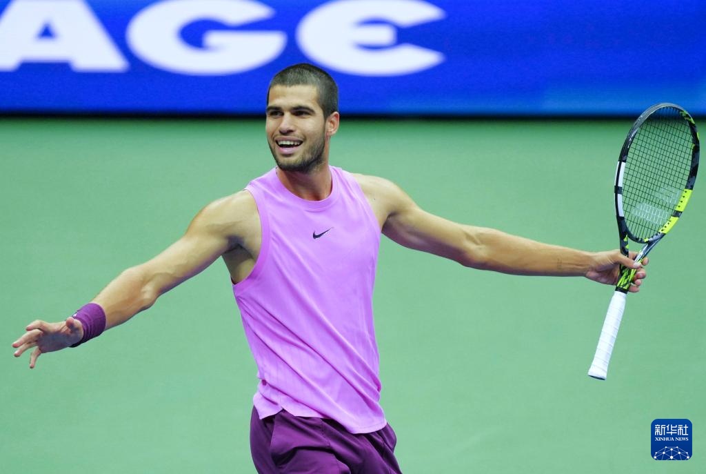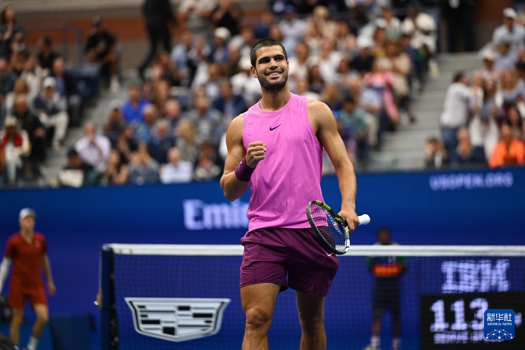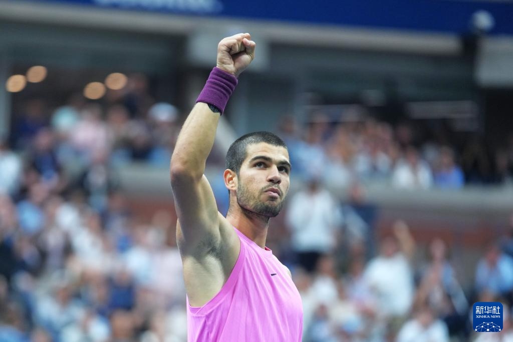 9月7日,阿爾卡拉斯慶祝拿到賽點(diǎn)。