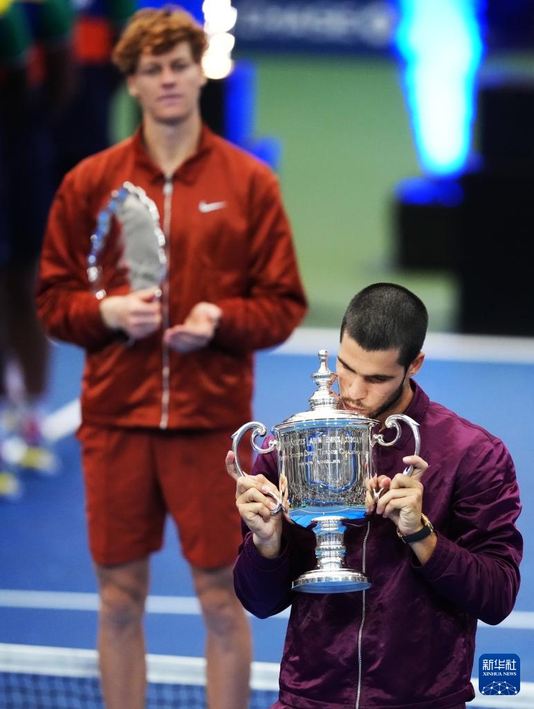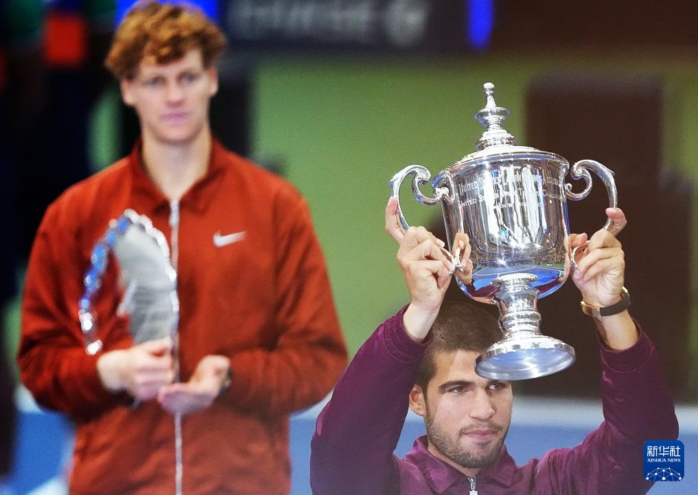 9月7日,阿爾卡拉斯(右)和辛納在頒獎儀式上。