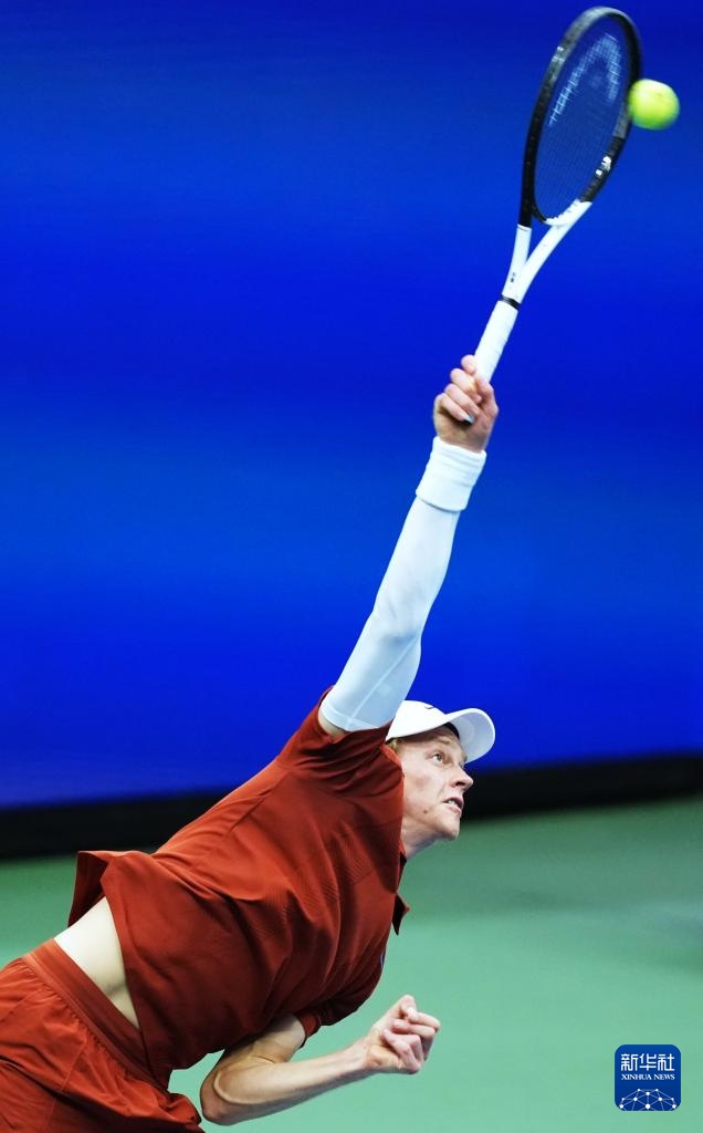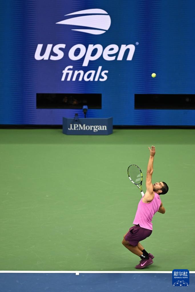 9月7日,阿爾卡拉斯在比賽中發(fā)球。
