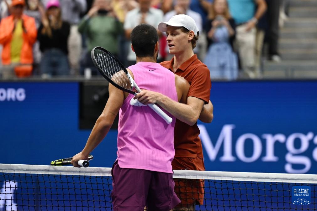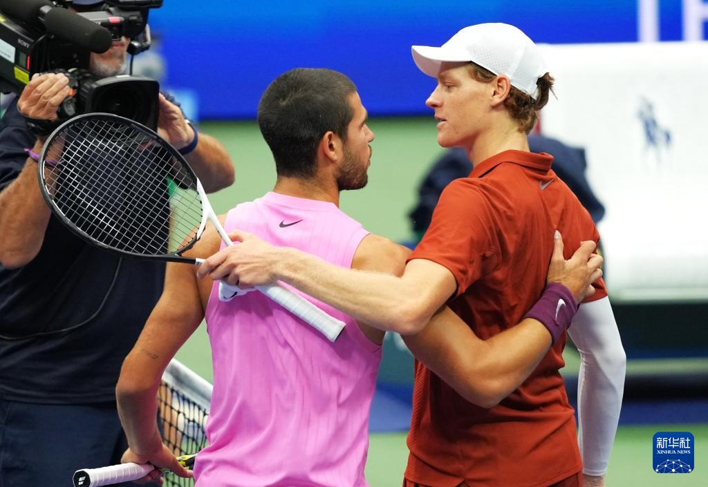 9月7日,阿爾卡拉斯(左)和辛納在比賽后擁抱致意。