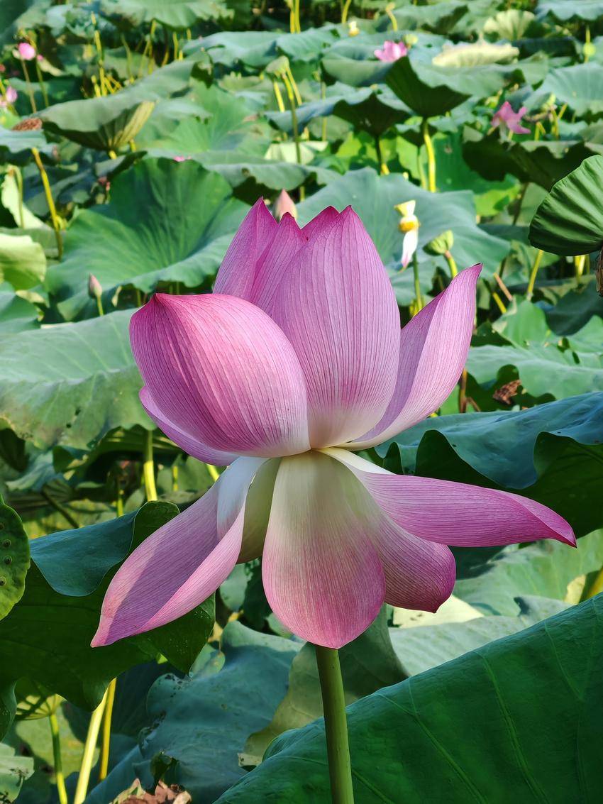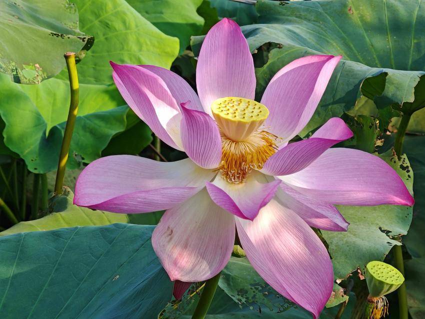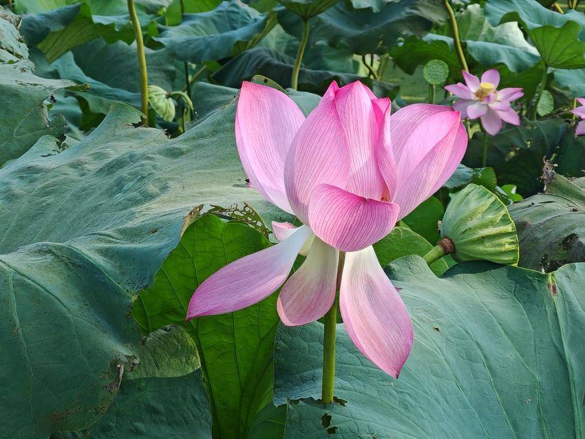 湖北日報客戶端訊(通訊員陳保忠)?9月7日,白露時節(jié),云夢縣城關(guān)鎮(zhèn)白鶴村的荷塘,被晨曦染成淡金色。晨露未晞,粉荷輕顫,如少女垂首斂眉,將一夜星輝凝作珍珠滾落。蜜蜂振翅的嗡鳴,是花間最靈動的韻腳,它們穿梭于胭脂色的花瓣與鵝黃花蕊之間,釀就秋日第一滴蜜香。