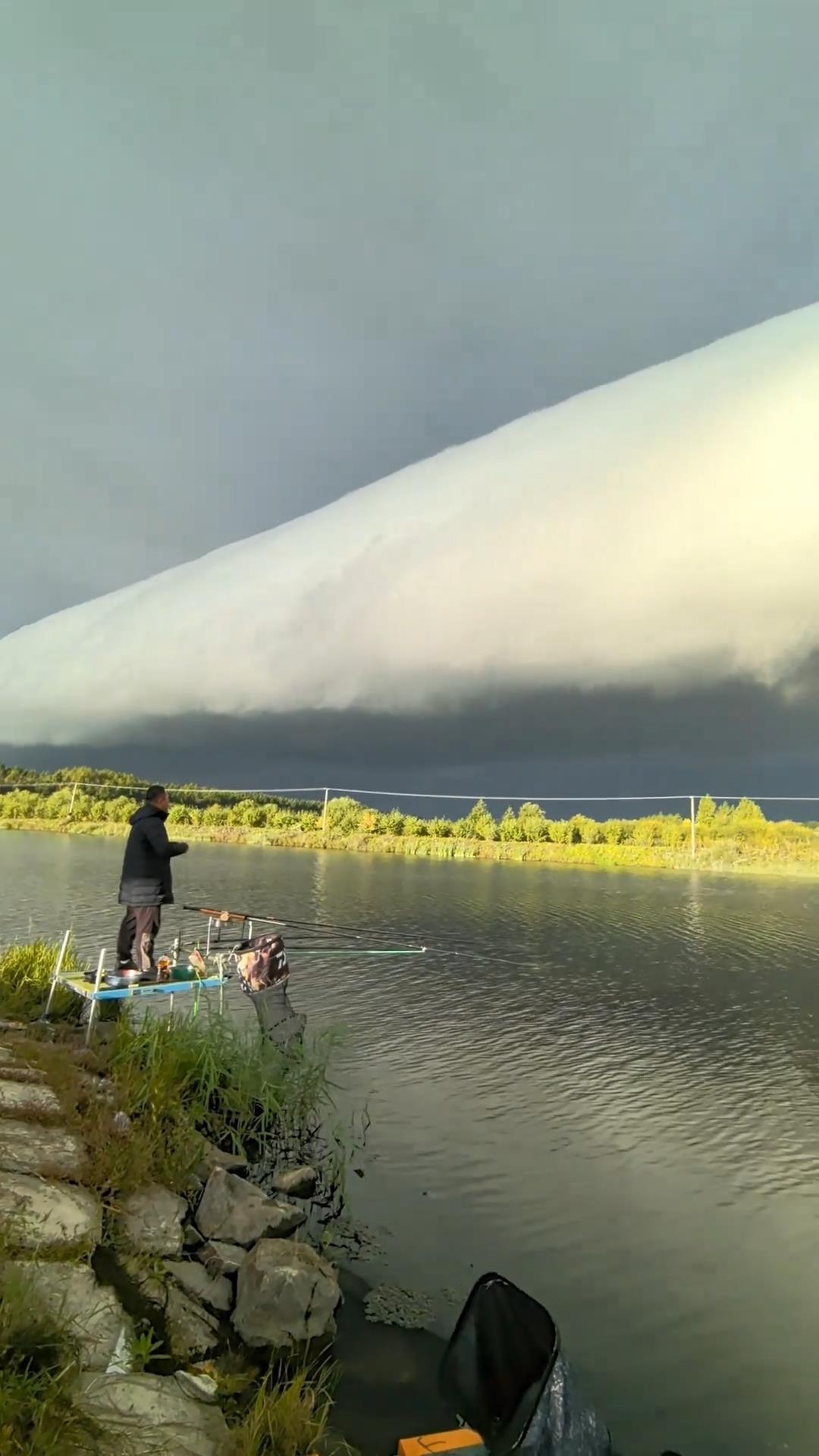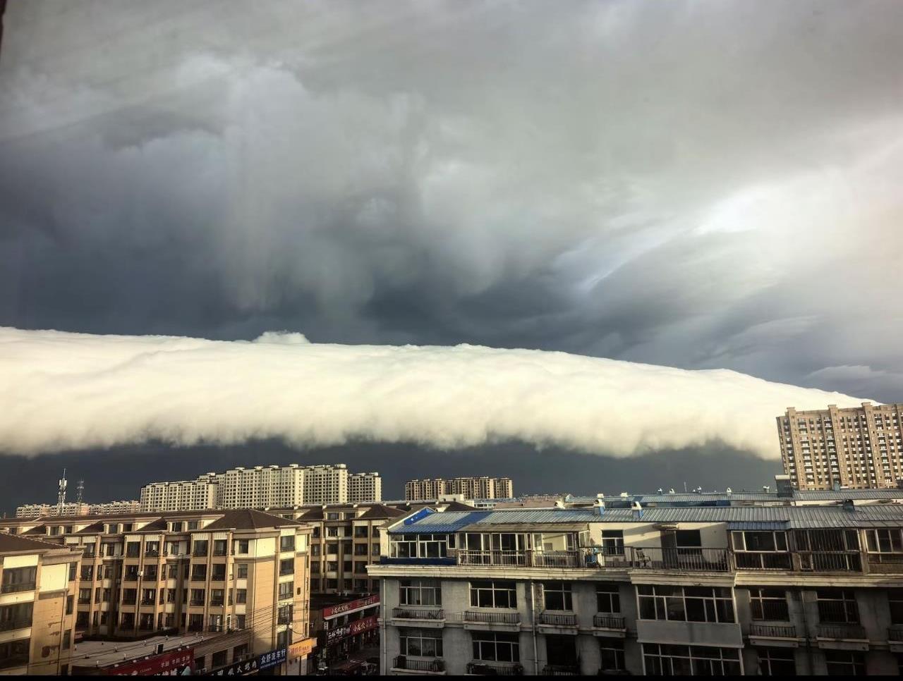 視頻畫面顯示,一條長長的水平滾筒狀云帶低懸在海倫市上空,云帶從遠處看如同和地面相連,形成了一堵白色的“云墻”,不少市民拿出手機記錄這一壯觀場景,“像雪山似的”。有網友在評論區稱,這是滾軸云,后面還跟著黑壓壓的一片,表明要下大雨。