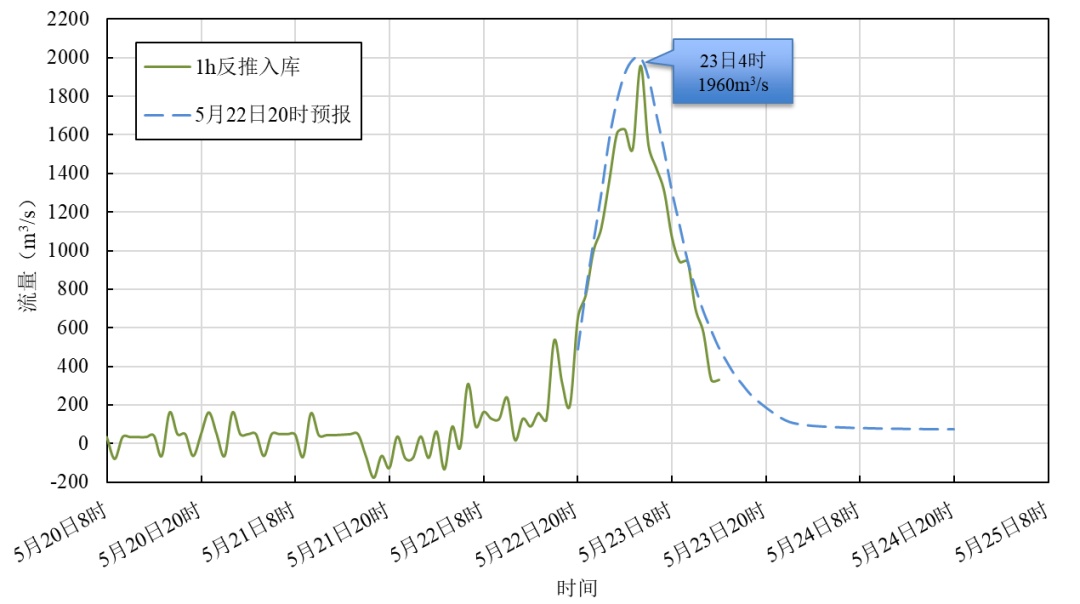 5月22日20時陸水流域入庫洪水預報與實況對比。