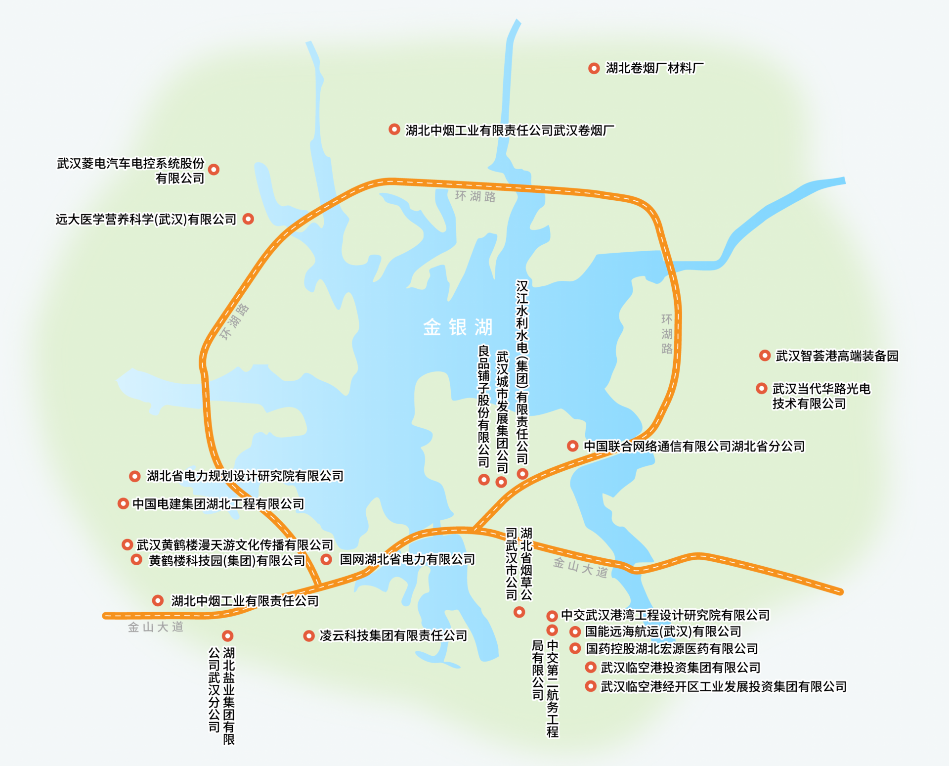 2000年,央企凌云科技集團率先落戶金山大道旁,成為金銀湖片區第一家總部企業。隨后,湖北煙草物資有限公司、中交第二航務工程局有限公司、中國航天三江集團有限公司等大型企業紛至沓來。