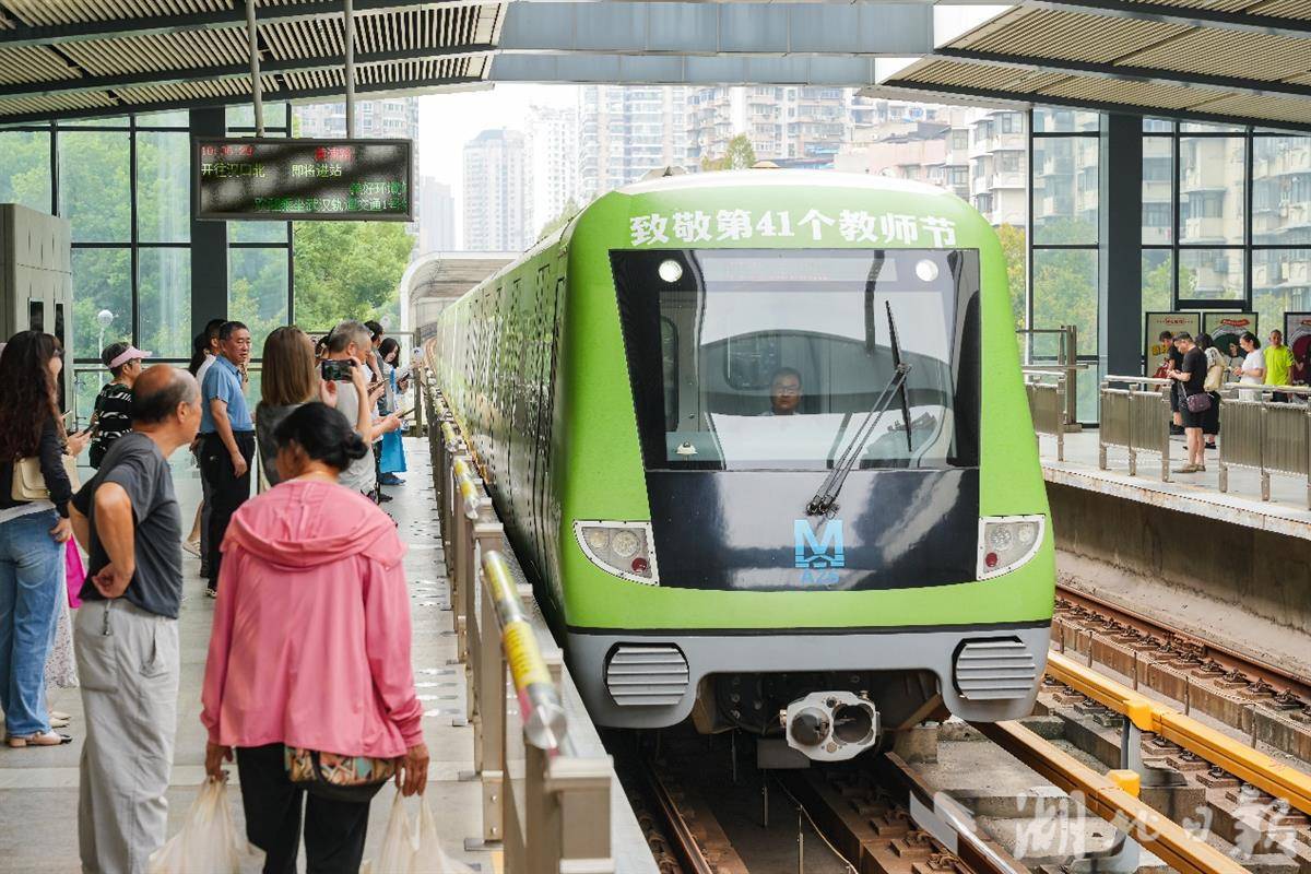 教師節期間,武漢地鐵還在街道口站、江漢路站等重點站點通過電子屏“為教師亮燈”,循環播放教師經典口頭禪、致敬祝福語及優秀教師照片,營造全城尊師重教的節日氛圍。