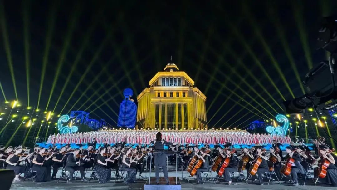 9月12日晚,在武漢漢口江灘三陽廣場組織民歌演唱、編鐘交響、情景舞蹈、世界大河名曲聯唱等文藝演出,舉辦無人機光影秀、煙花表演等,打造“江岸—江面—天際”三位一體的文化展演空間。
