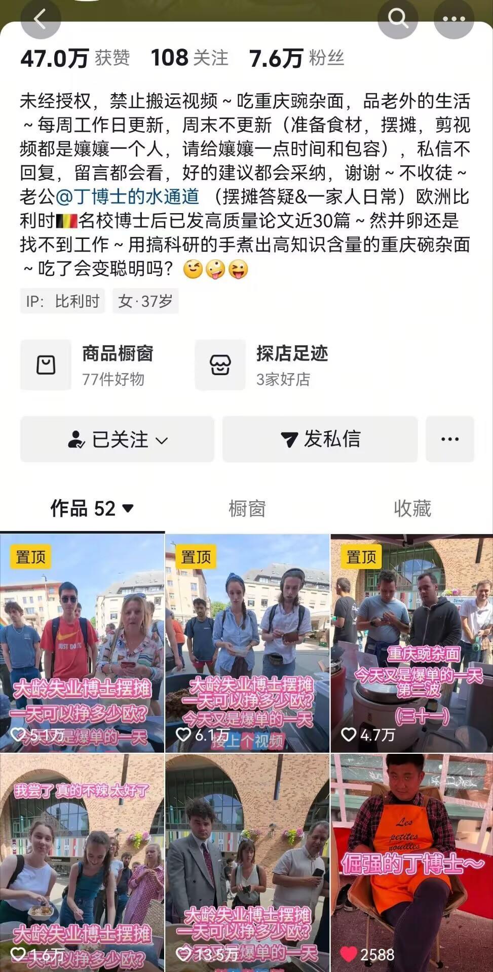有網友覺得博士去國外街頭擺攤賣豌雜面是炒作,還有網友對每日收入最高可以達到1000歐元提出懷疑。9月8日,極目新聞記者聯系上了汪女士和丁先生,二人稱視頻所發情況屬實,更不是為了炒作。