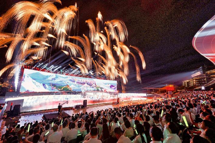 平湖夜色被舞臺燈光點(diǎn)亮。