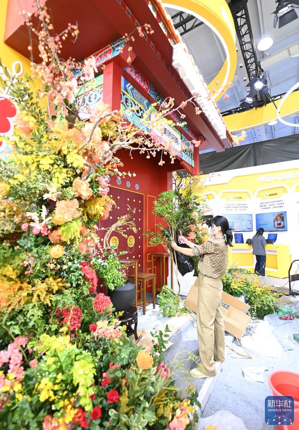 ↑ 9月9日,服貿會文旅服務專題展的工作人員在布置展區。