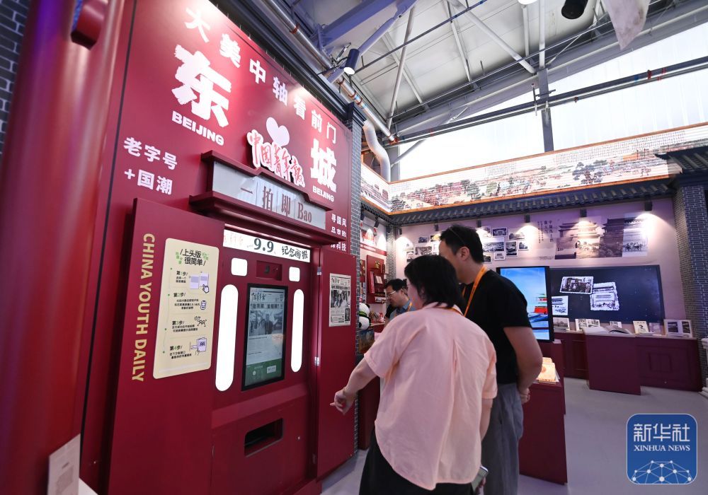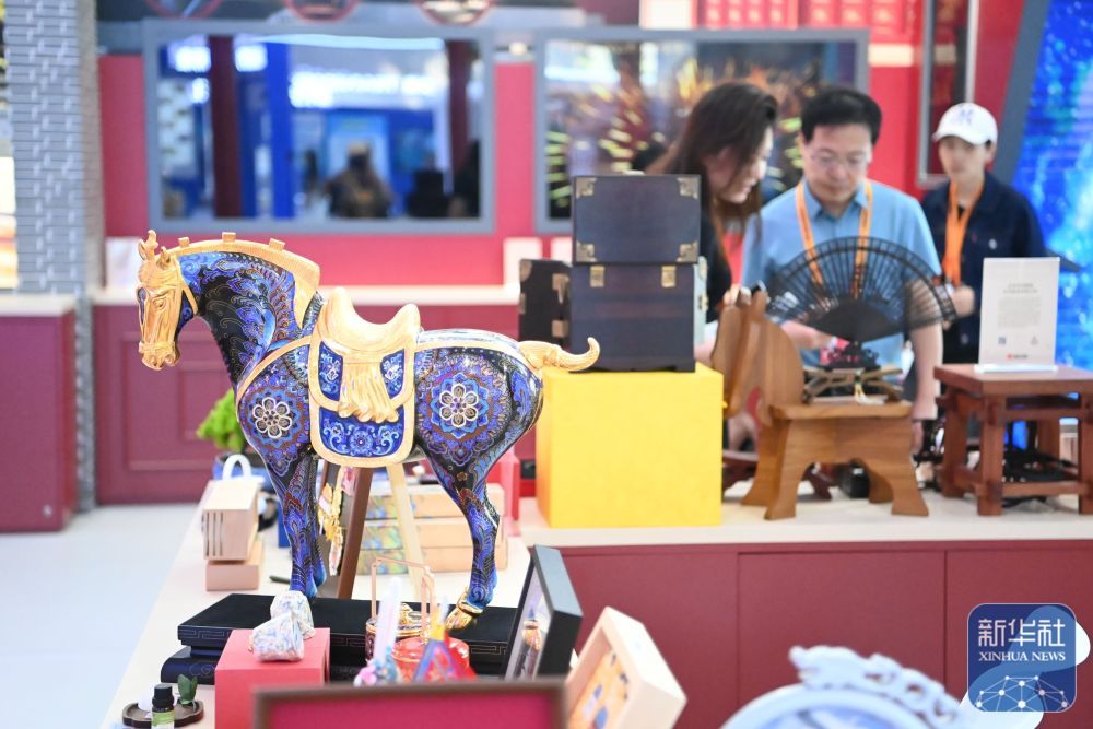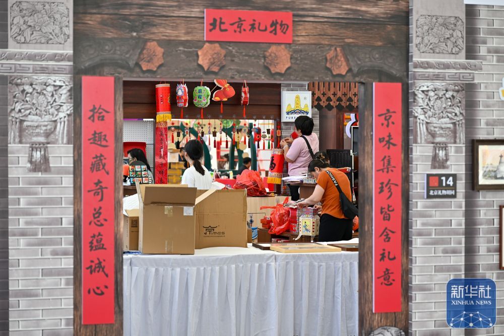 ↑ 9月9日,參觀者在服貿會展廳的北京東城展位參觀文創產品。