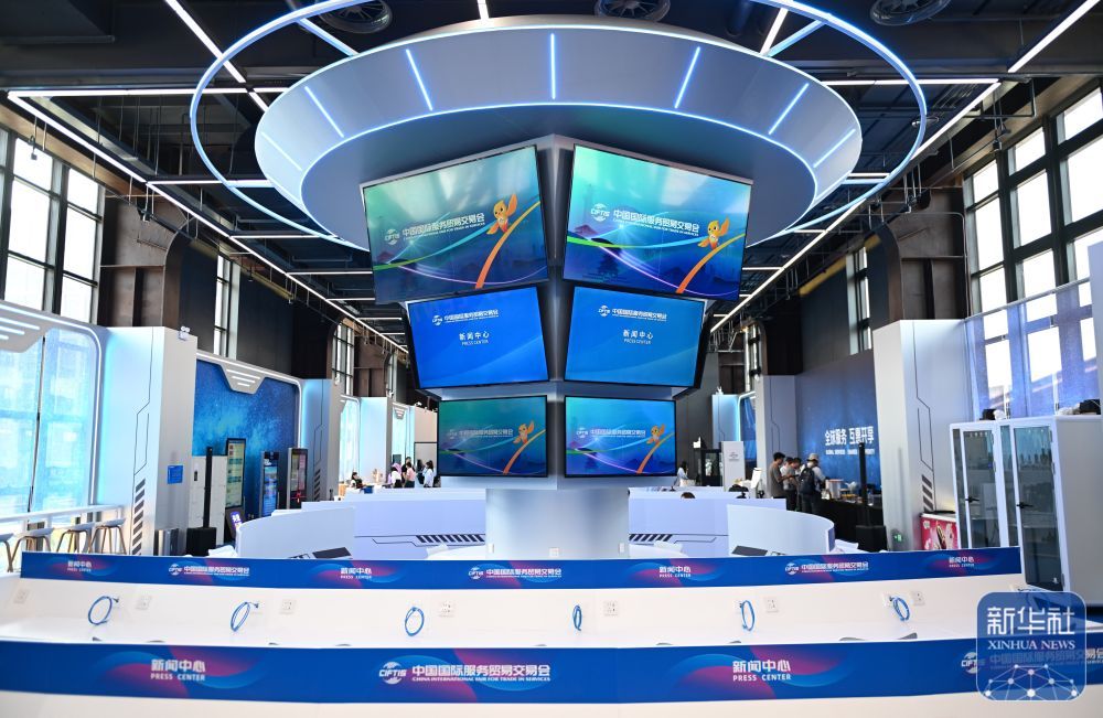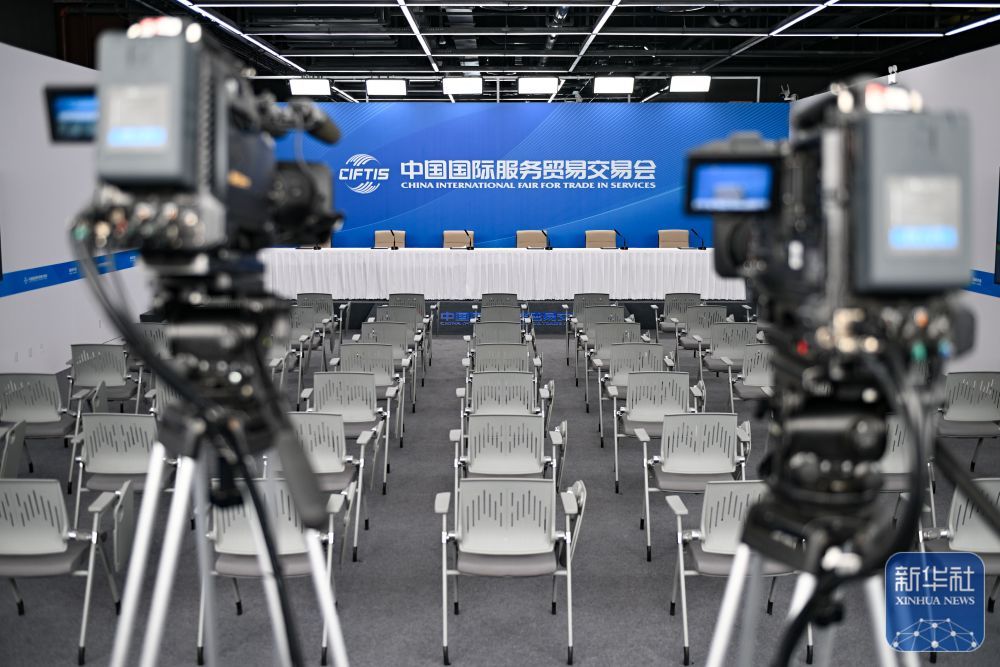 ↑ 這是9月9日拍攝的本屆服貿會新聞中心的新聞發布廳。
