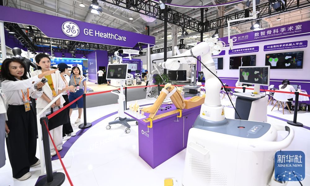 ↑ 9月9日,參觀者在服貿會展廳參觀“數智骨科手術室”。