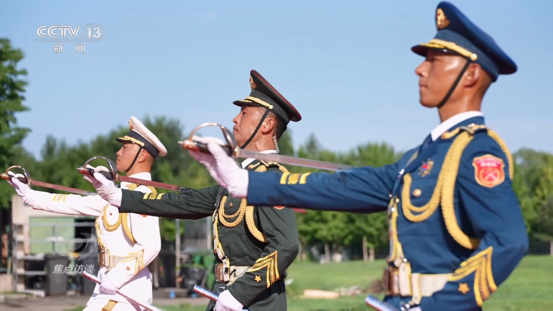 這支方隊(duì)中一共有3名分隊(duì)長,他們手持指揮刀,行軍刀禮,拔刀、立刀、托刀、舉刀,每一下都精準(zhǔn)無誤,就連刀鞘的角度都是一致的。除此之外,整個方陣的步伐都由他們來帶領(lǐng)。
