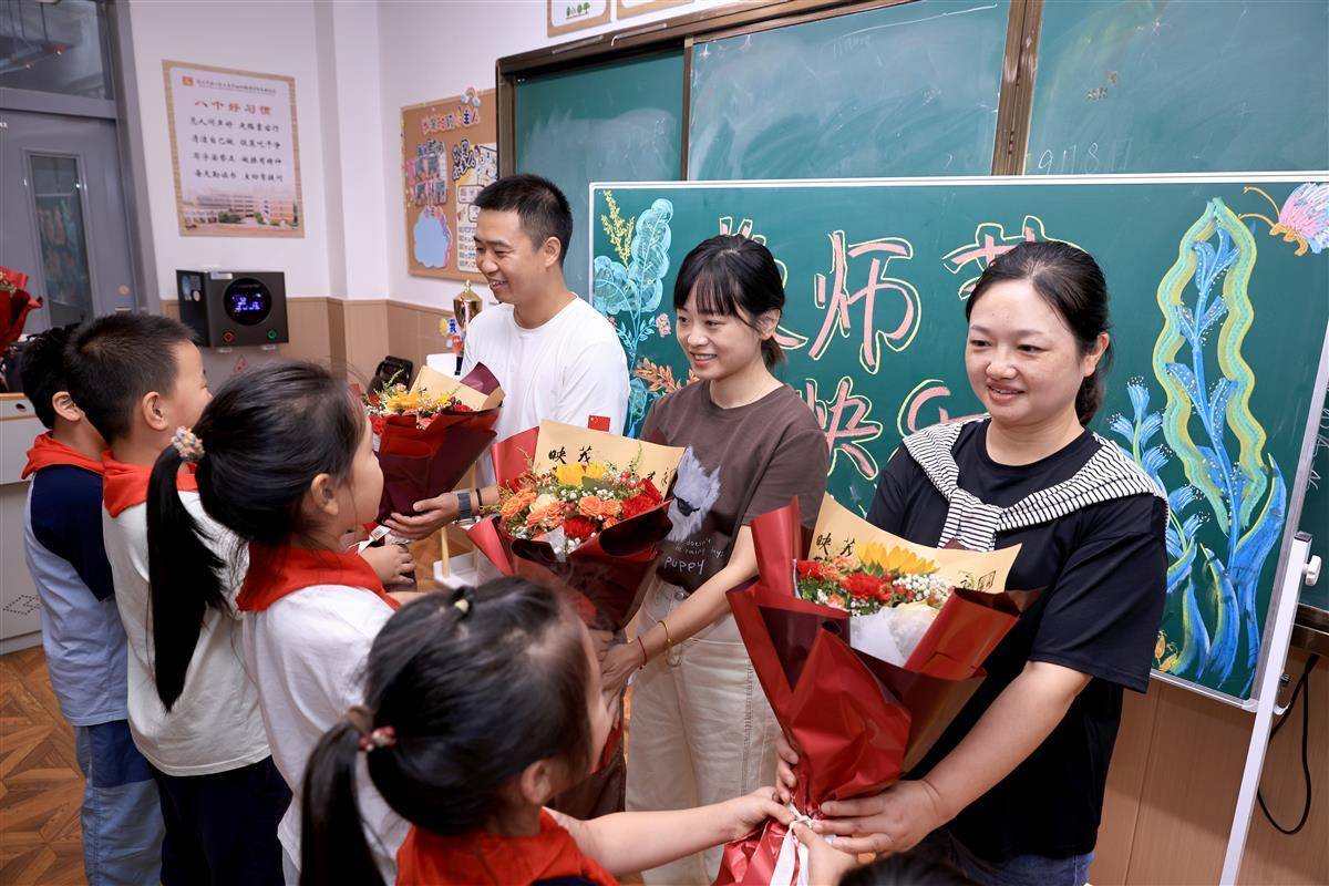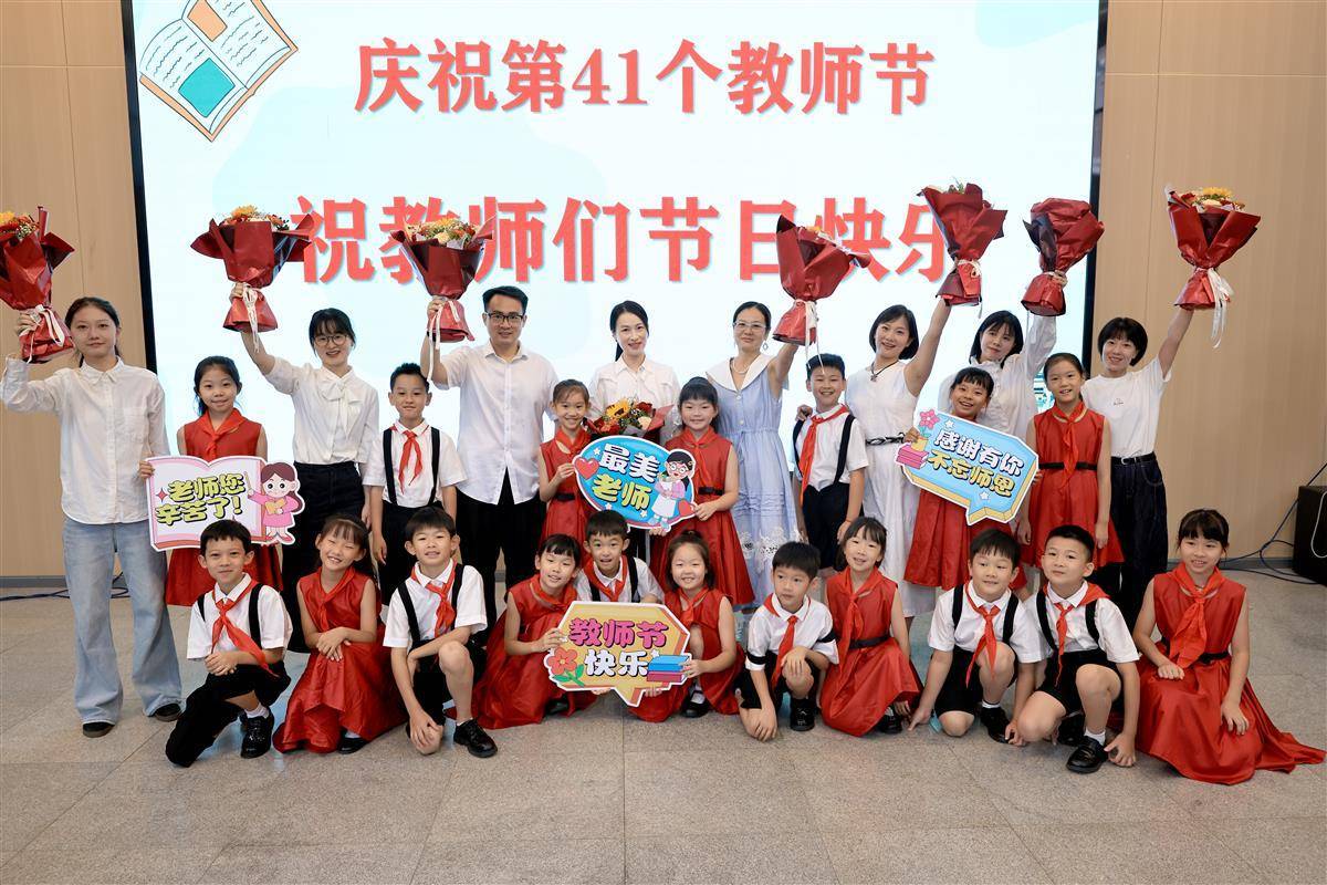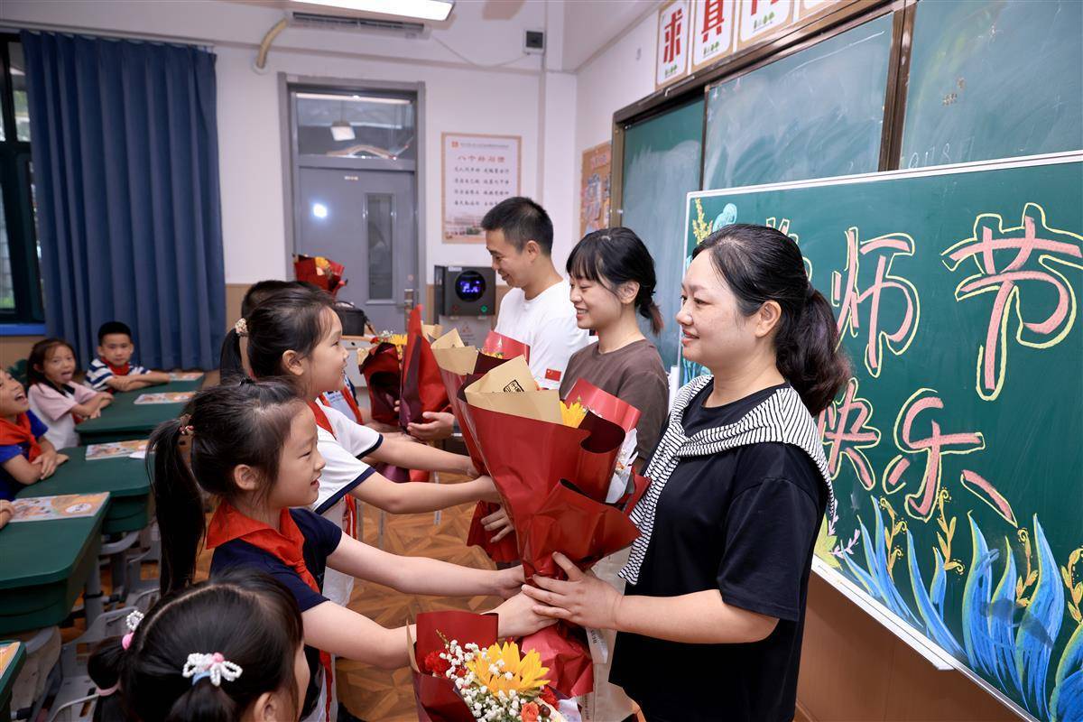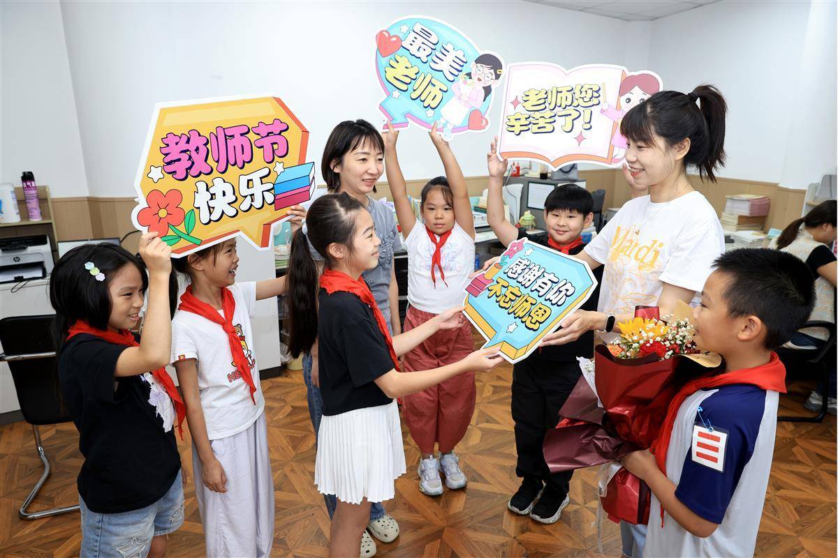9月9日,臨近教師節,武漢市洪山區未來實驗外國語學校美林校區,學生代表向老師們表達節日祝福。當天”以教育家精神鑄魂強師,譜寫教育強國建設華章”——慶祝第41個教師節活動在該校學術報告廳舉行。教師、學生代表等齊聚一堂,共同慶祝這個屬于教育工作者的光榮節日。(湖北日報全媒記者 魏錸 通訊員 雷迪 攝)