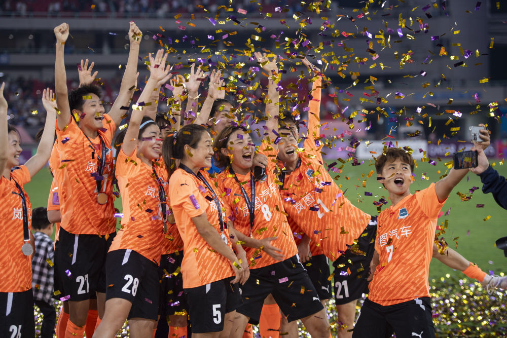 5月24日,在湖北武漢舉行的2024-2025賽季亞足聯女足俱樂部冠軍聯賽決賽中,中國武漢車谷江大隊與澳大利亞墨爾本城隊在常規時間和加時賽1比1戰平,中國武漢車谷江大隊通過點球大戰5比4獲勝,總比分6比5戰勝澳大利亞墨爾本城隊,奪得冠軍。新華社記者 伍志尊 攝