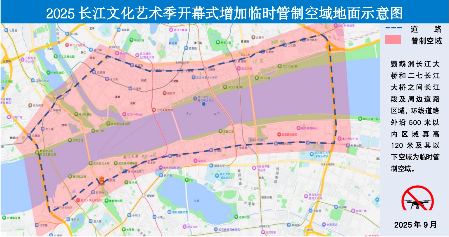 湖北日?qǐng)?bào)訊(記者楊然、通訊員武龔萱)為維護(hù)2025長(zhǎng)江文化藝術(shù)季開(kāi)幕式活動(dòng)安全,9月9日,武漢公安發(fā)布《關(guān)于增加無(wú)人駕駛航空器臨時(shí)管制空域的通告》,《通告》原文如下: