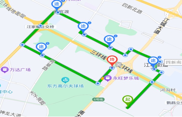 微公交12路:首末站由杉杉奧特萊斯5號門至薔薇路永旺夢樂城,線路走向:杉杉奧特萊斯5號門、紫藤路、四新南路、芳草六街、芳草五街、芳草路、四新南路、東風大道、太子湖北路、薔薇路、薔薇路永旺夢樂城,單程線長11.7公里。