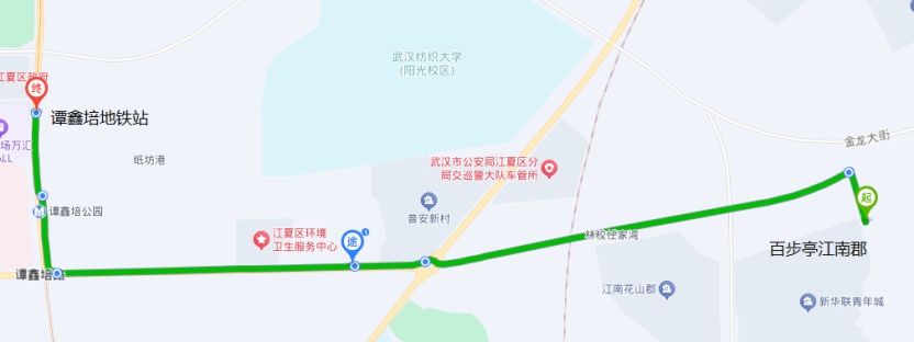 微公交15路:首末站由江夏大道向陽二路至文化大道聯(lián)投廣場,線路走向:江夏大道、譚鑫培路、文化大道,單程線長4.4公里。