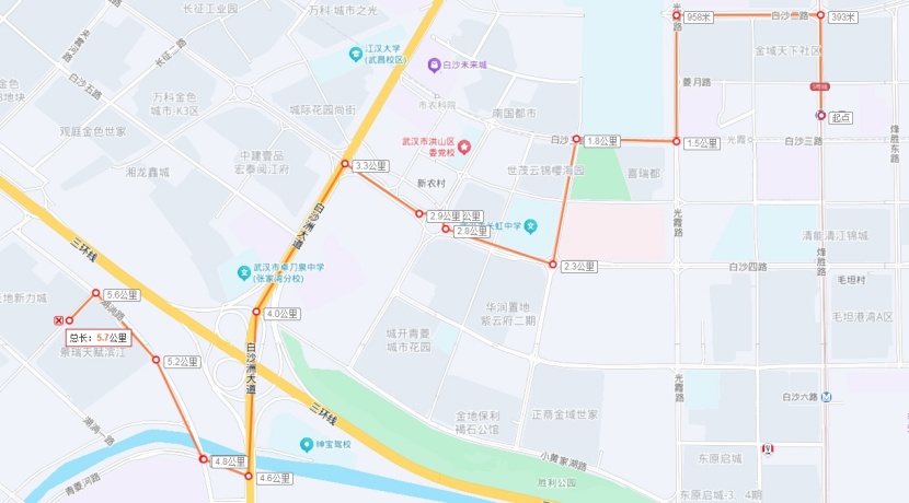 微公交8路:首末站由茂興路地鐵蔡甸廣場站至長江大學,線路走向:蔡甸大街、茂興路、通城大道、長江大學,單程線長:5.5公里。
