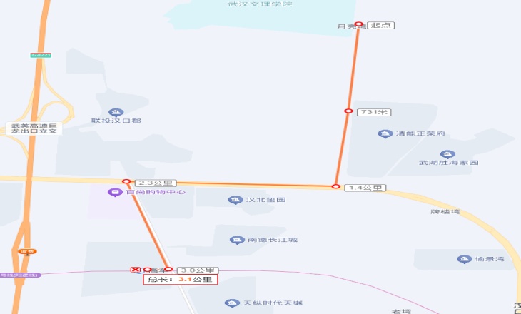 微公交3路: 首末站由武漢文理學院至梅教街地鐵高車站,線路走向:勝海大道、漢口北大道、梅教街至梅教街地鐵高車站(21號線C出口),單程線長3.1公里。
