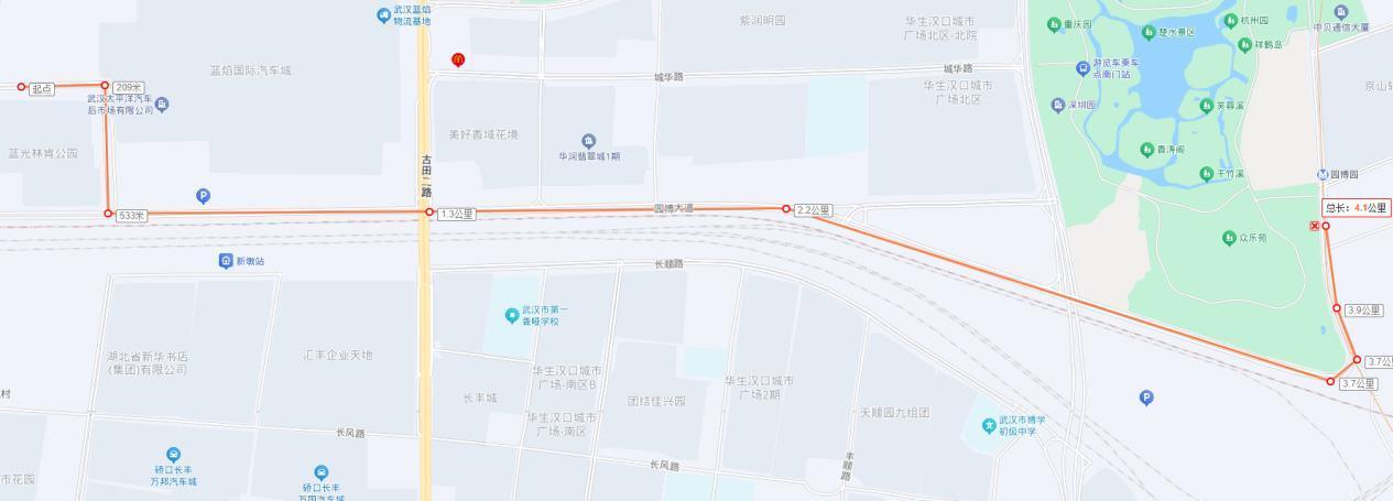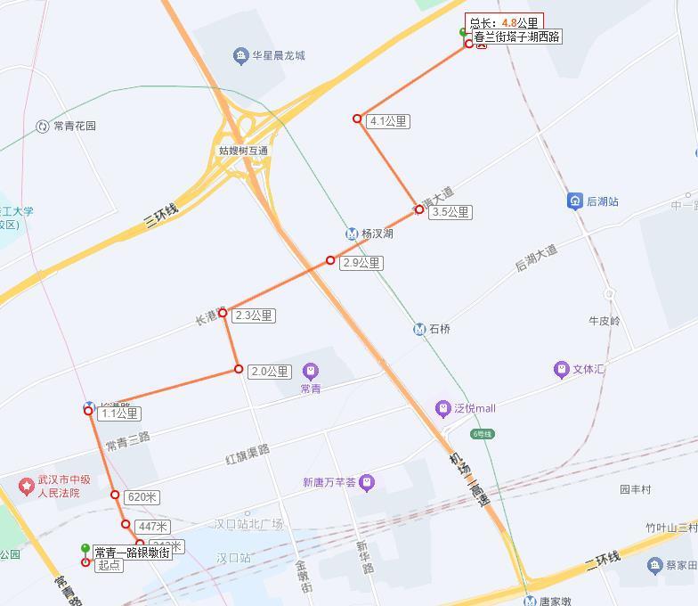 微公交12路:首末站由杉杉奧特萊斯5號門至薔薇路永旺夢樂城,線路走向:杉杉奧特萊斯5號門、紫藤路、四新南路、芳草六街、芳草五街、芳草路、四新南路、東風大道、太子湖北路、薔薇路、薔薇路永旺夢樂城,單程線長11.7公里。