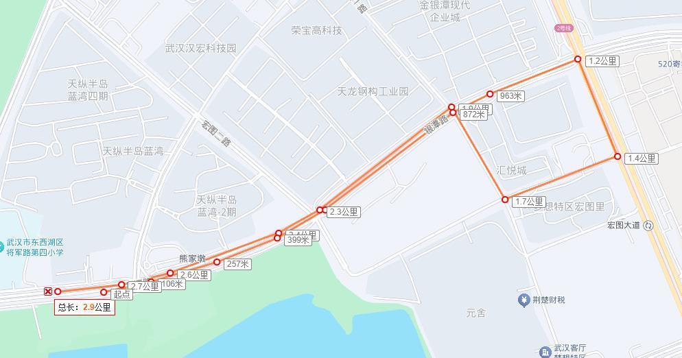 微公交2路:天縱半島藍灣4期北門至天縱半島藍灣4期北門,線路走向:由天縱半島藍灣4期北門發車,經宏圖二路、銀潭路、宏圖路、居家路、宏圖一路、銀潭路、宏圖二路,全程線長3.2公里。