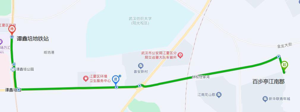 微公交15路:首末站由江夏大道向陽二路至文化大道聯投廣場,線路走向:江夏大道、譚鑫培路、文化大道,單程線長4.4公里。