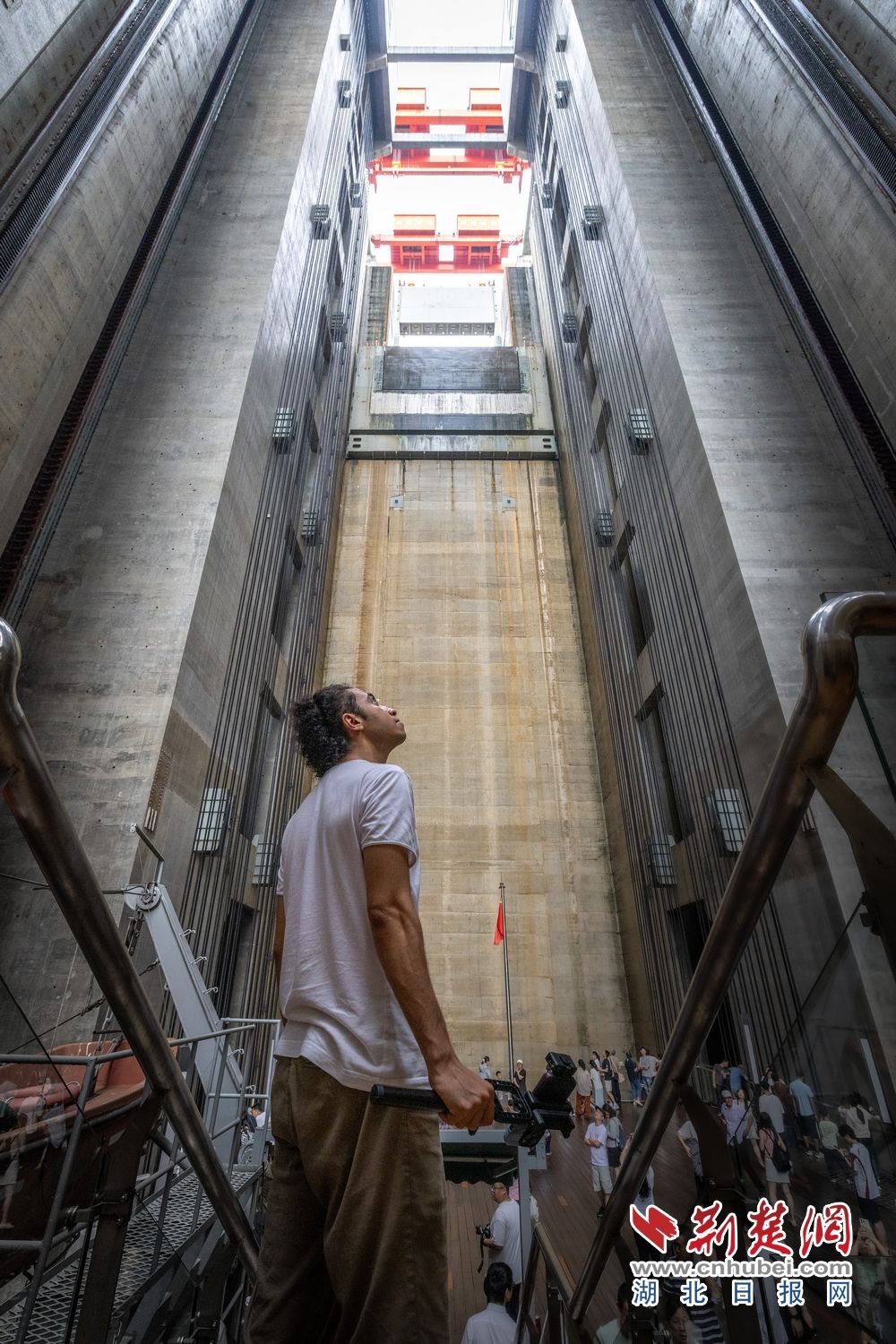 在宜昌,埃及青年顏淵第一次體驗三峽升船機