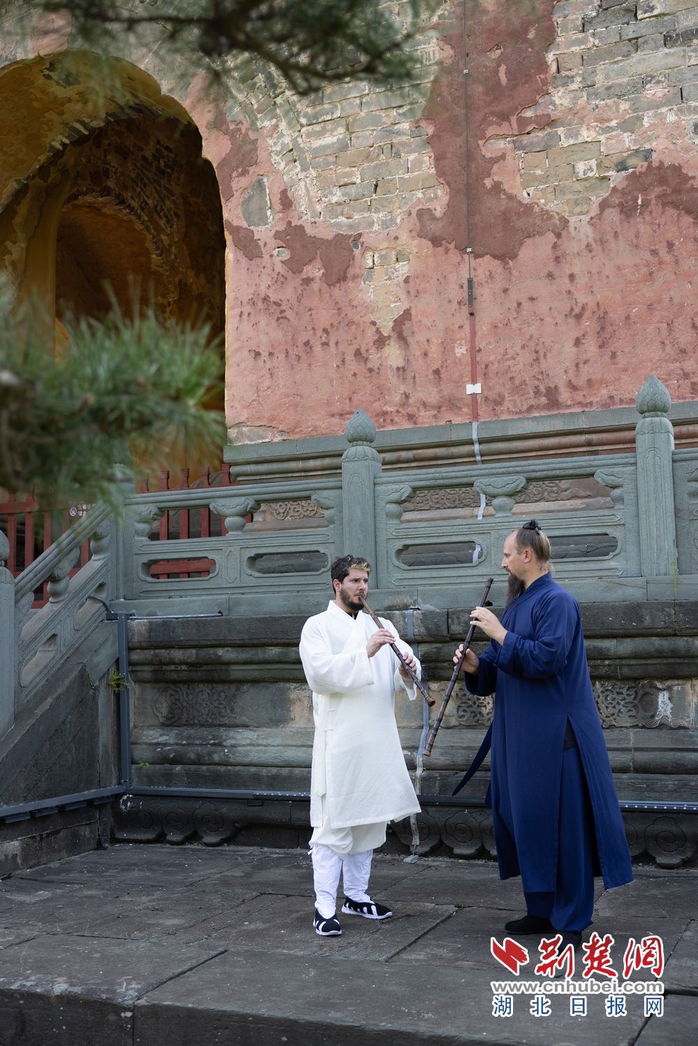 在武當山,美國博主保保熊跟著杰克道長學習了洞簫演奏