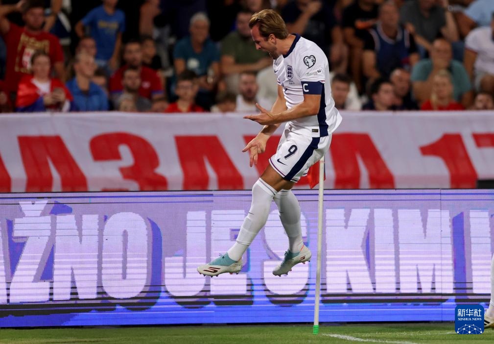 9月9日,英格蘭隊(duì)球員凱恩(右一)在比賽中。