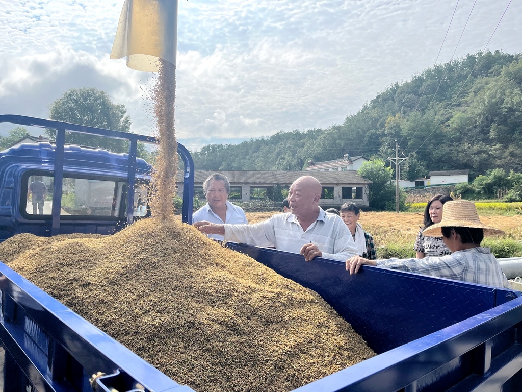 在分鄉(xiāng)鎮(zhèn)南埡村,傳出了水稻增產(chǎn)的好消息。4組村民劉興定種植的3畝“荃優(yōu)絲苗”水稻,預(yù)計(jì)總產(chǎn)量達(dá)5000斤,較去年每畝增產(chǎn)約200斤。“今年選的新品種抗病性強(qiáng),稻穗更飽滿。”他捧著沉甸甸的稻谷笑著說。