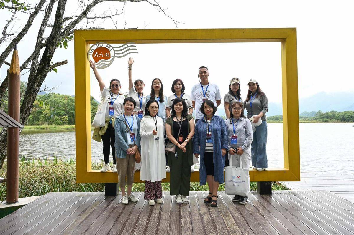 在大九湖國家濕地公園,旅行商們在森林棧道中漫步,游覽群山環抱中點綴成片的湖泊,觀賞珍稀動植物。拿出手機不停拍照,每到一處觀景臺都要記錄下這里的風光。