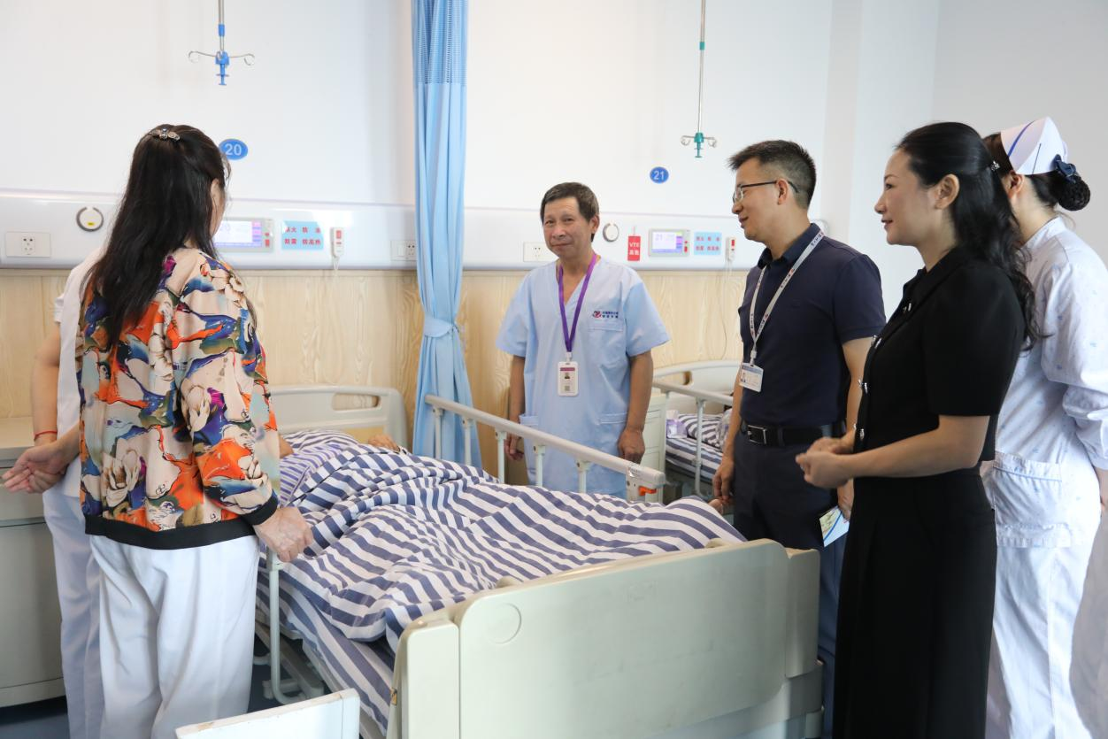 儀式結(jié)束后,在醫(yī)院護理人員陪同下,部分患者家屬參觀了關(guān)節(jié)外科、創(chuàng)傷外科二區(qū)免陪照護病房,零距離感受翻身拍背、洗頭等標(biāo)準(zhǔn)化操作流程。