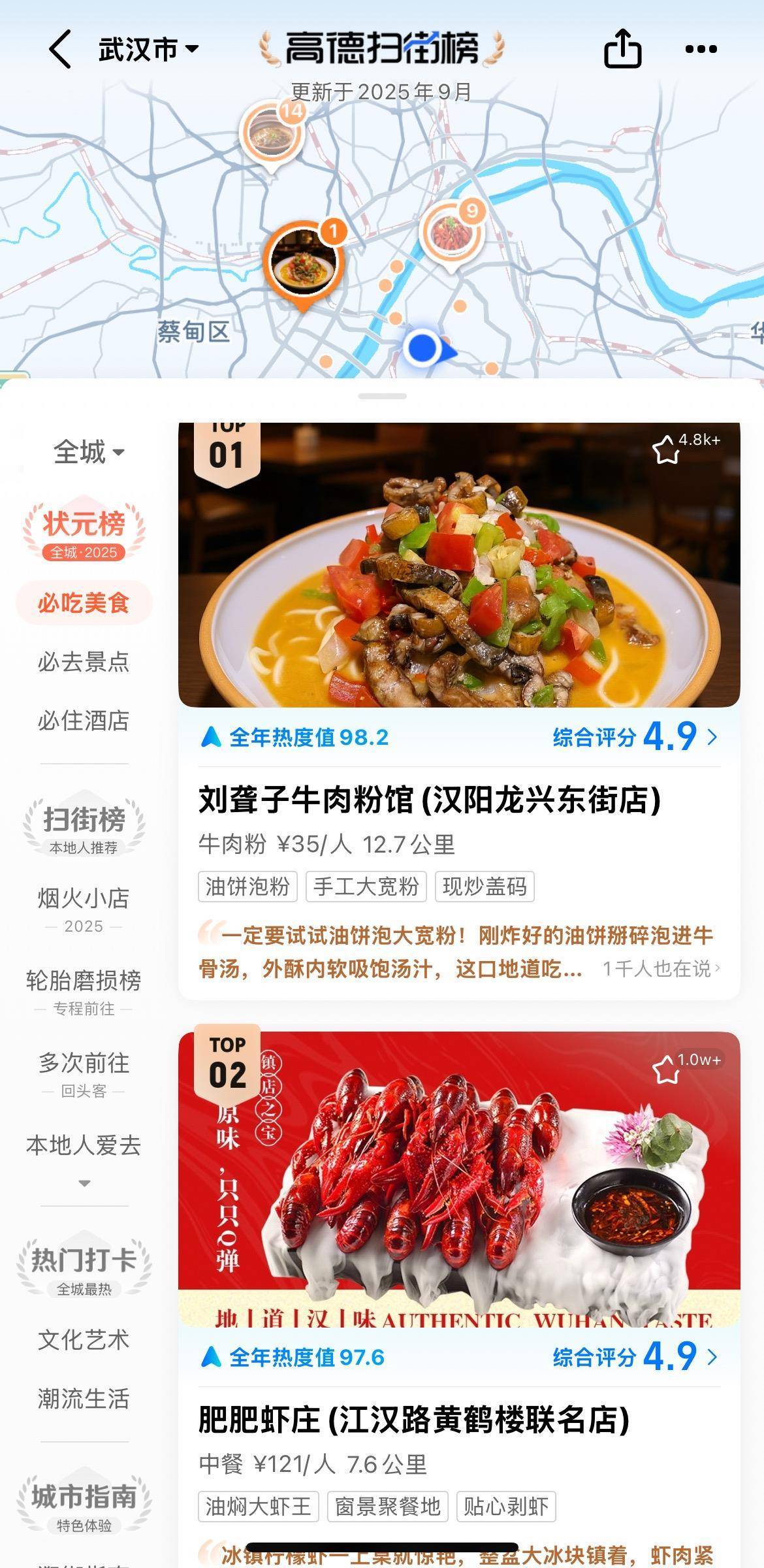 在此基礎(chǔ)上,高德掃街榜推出很多獨(dú)有的特色榜單。